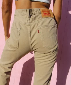 Vintage 501 Levi’s jeans in a pale tan brown denim.