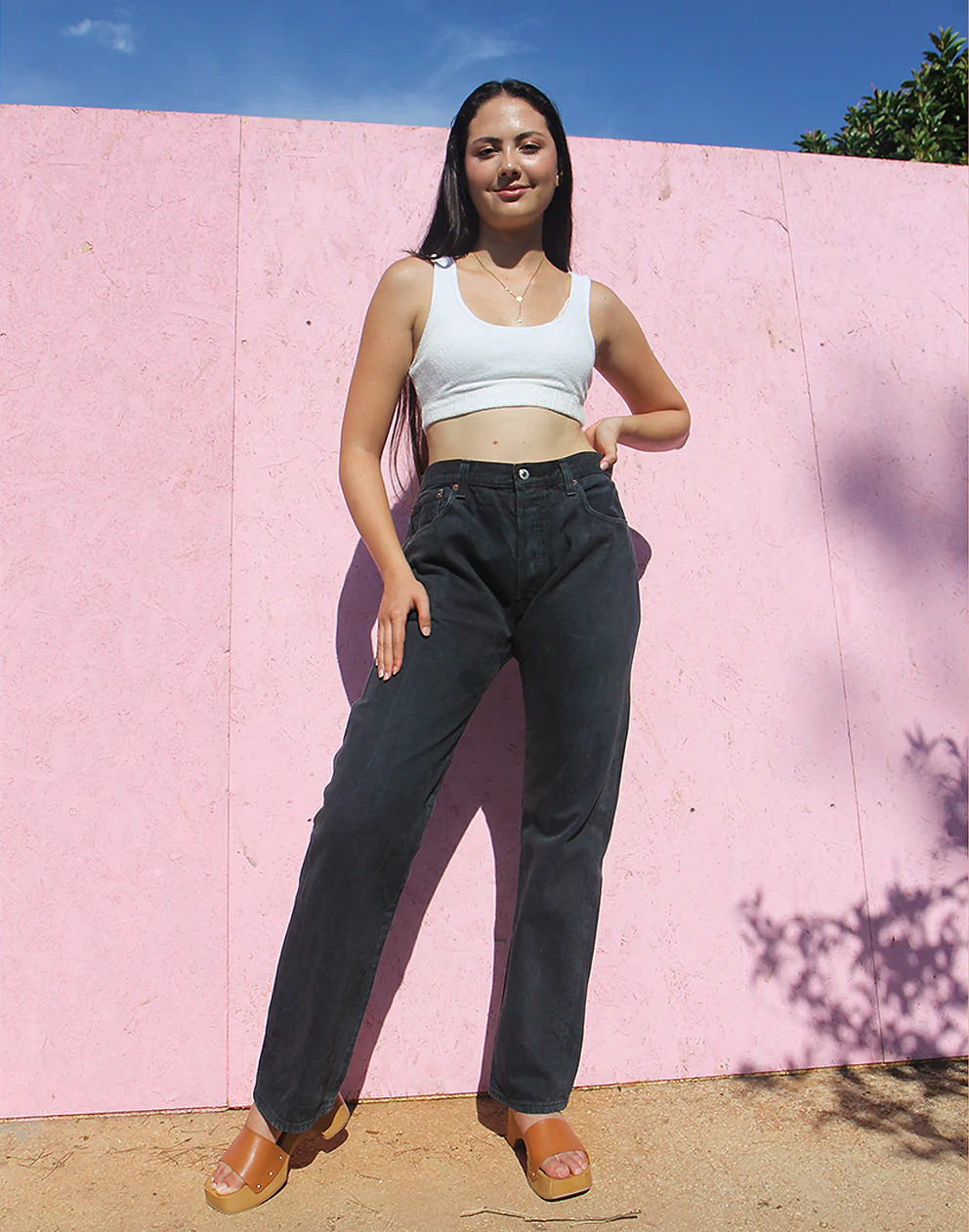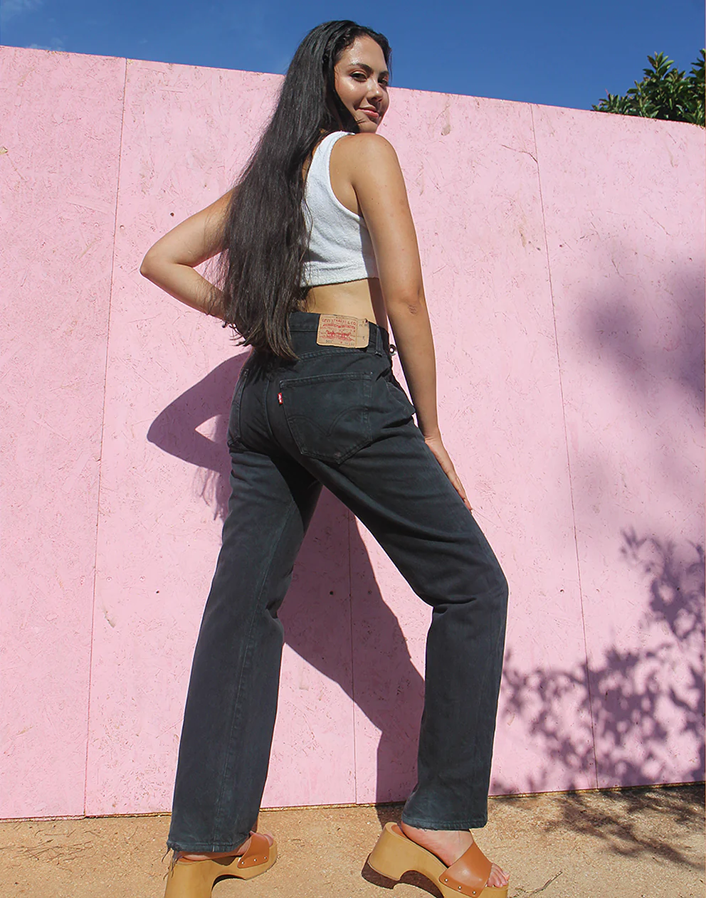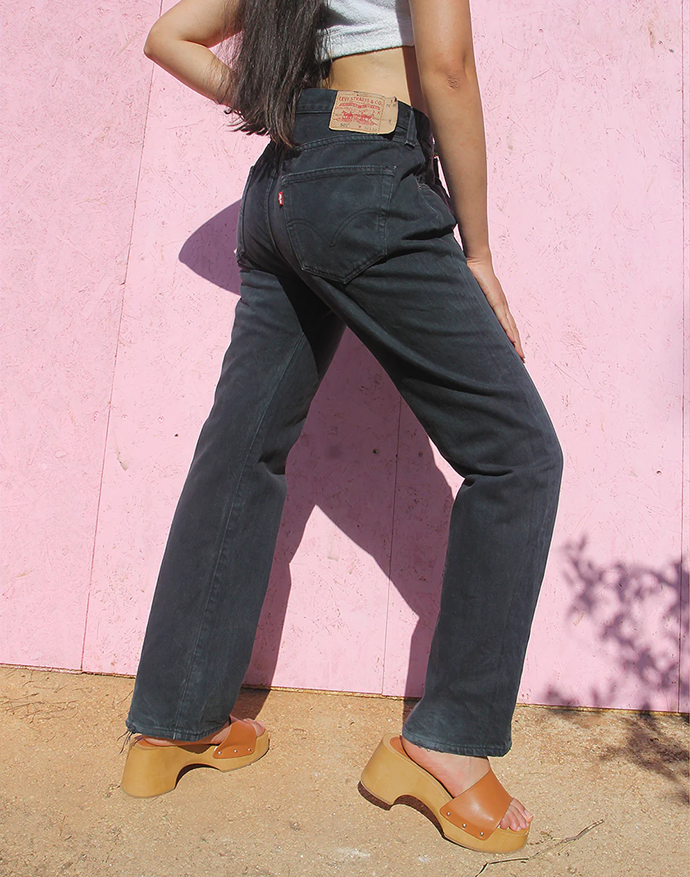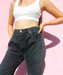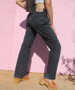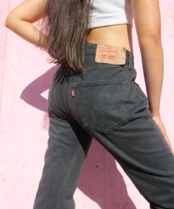 Vintage 501 Levi’s jeans in a faded black denim.