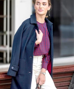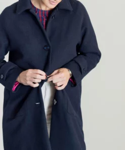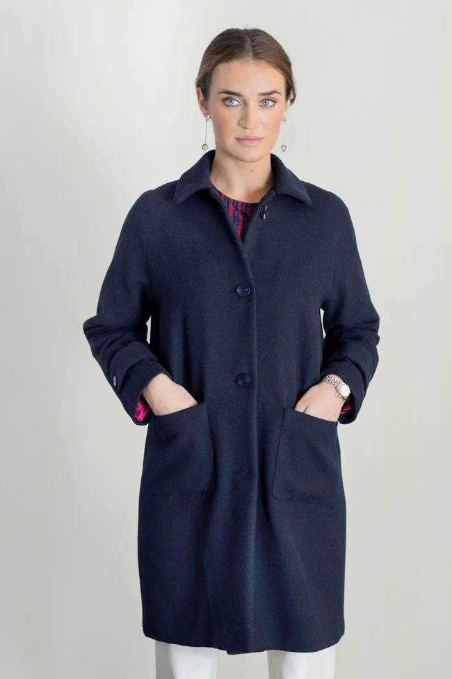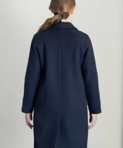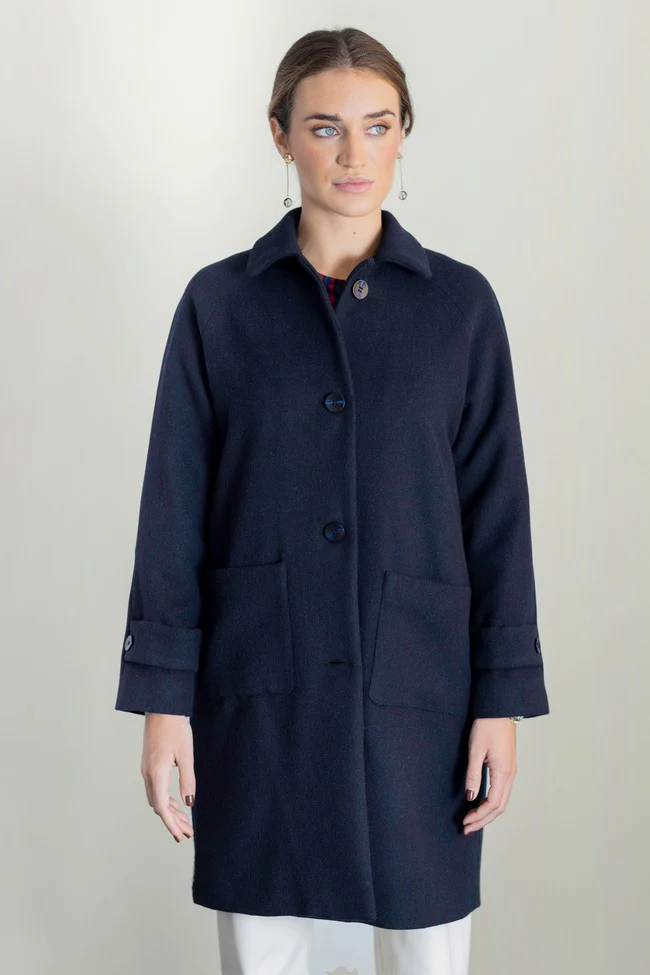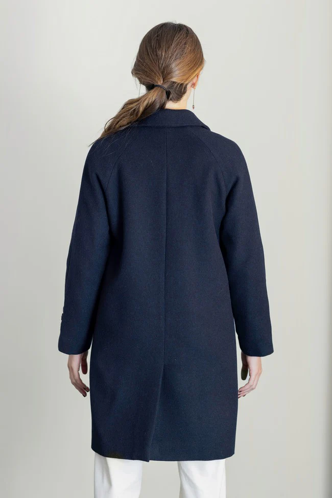 Abrigo realizado en tejido de lana con mezcla, en color azul marino.