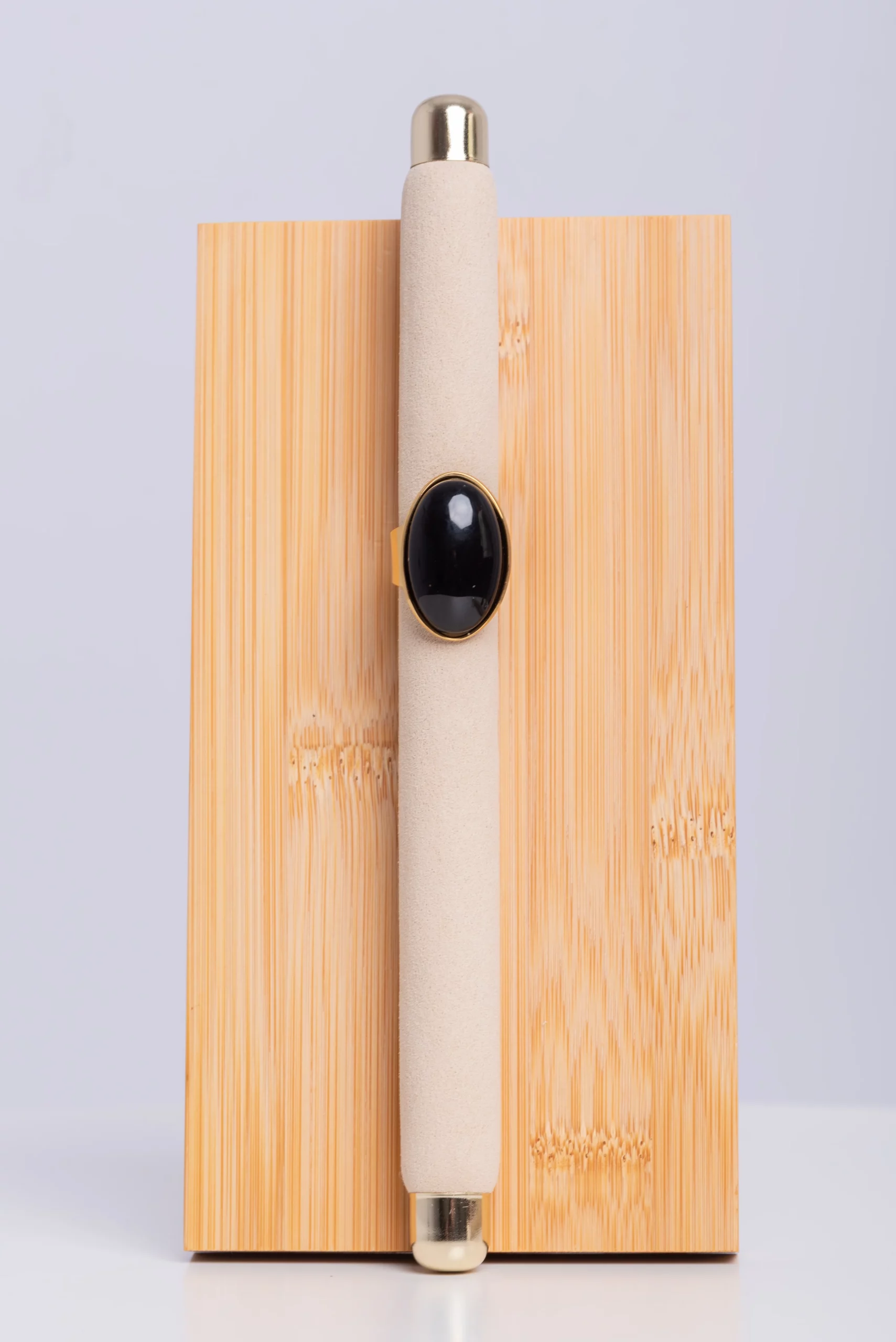 Anillo dorado Piedra negra. Ajustable con presion. Talla única. Acero.