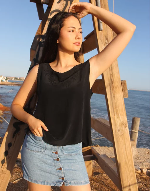 Black Silk Tank Top