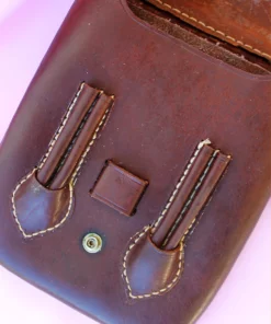 Original vintage real leather small satchel bag in a dark brown colour with contrasting stitching.