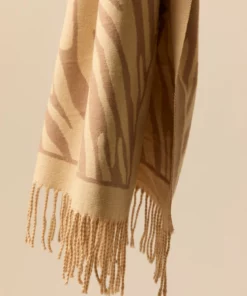 Bufanda de estampado de animal print en color beige. Diseño amplio, detalle de flecos en los extremos y tacto suave.