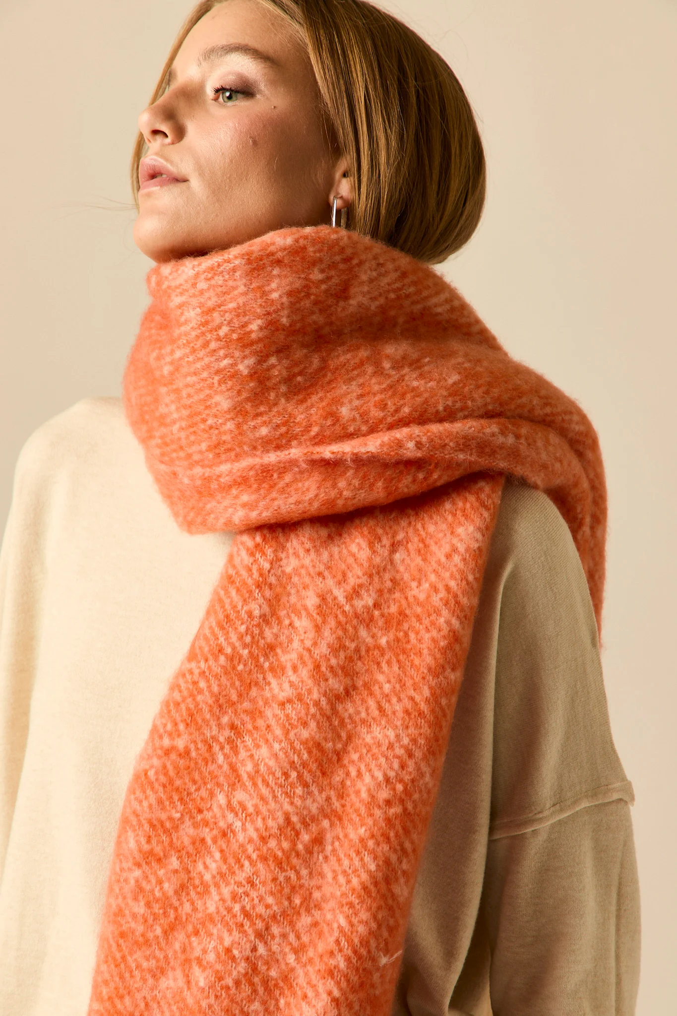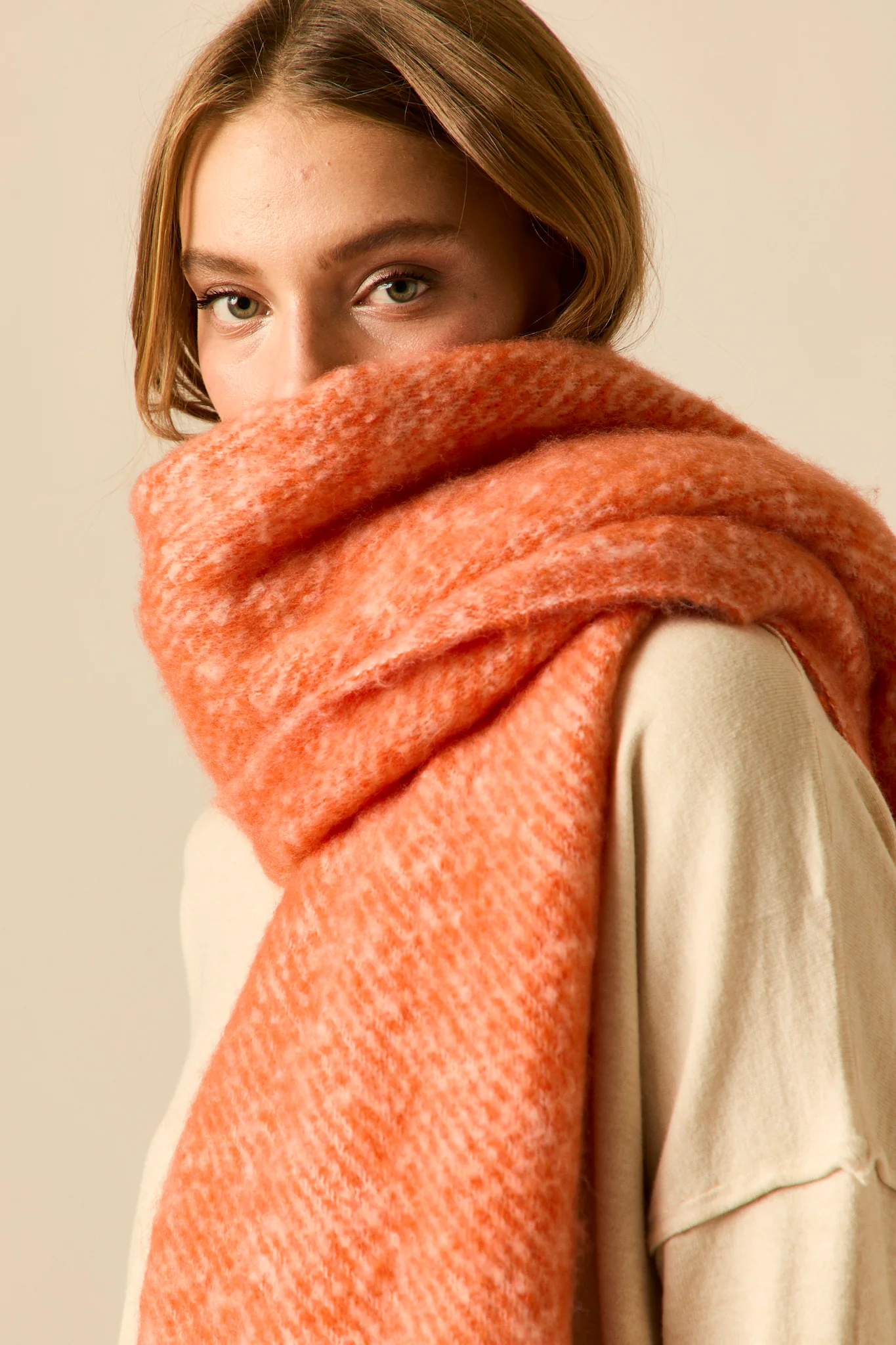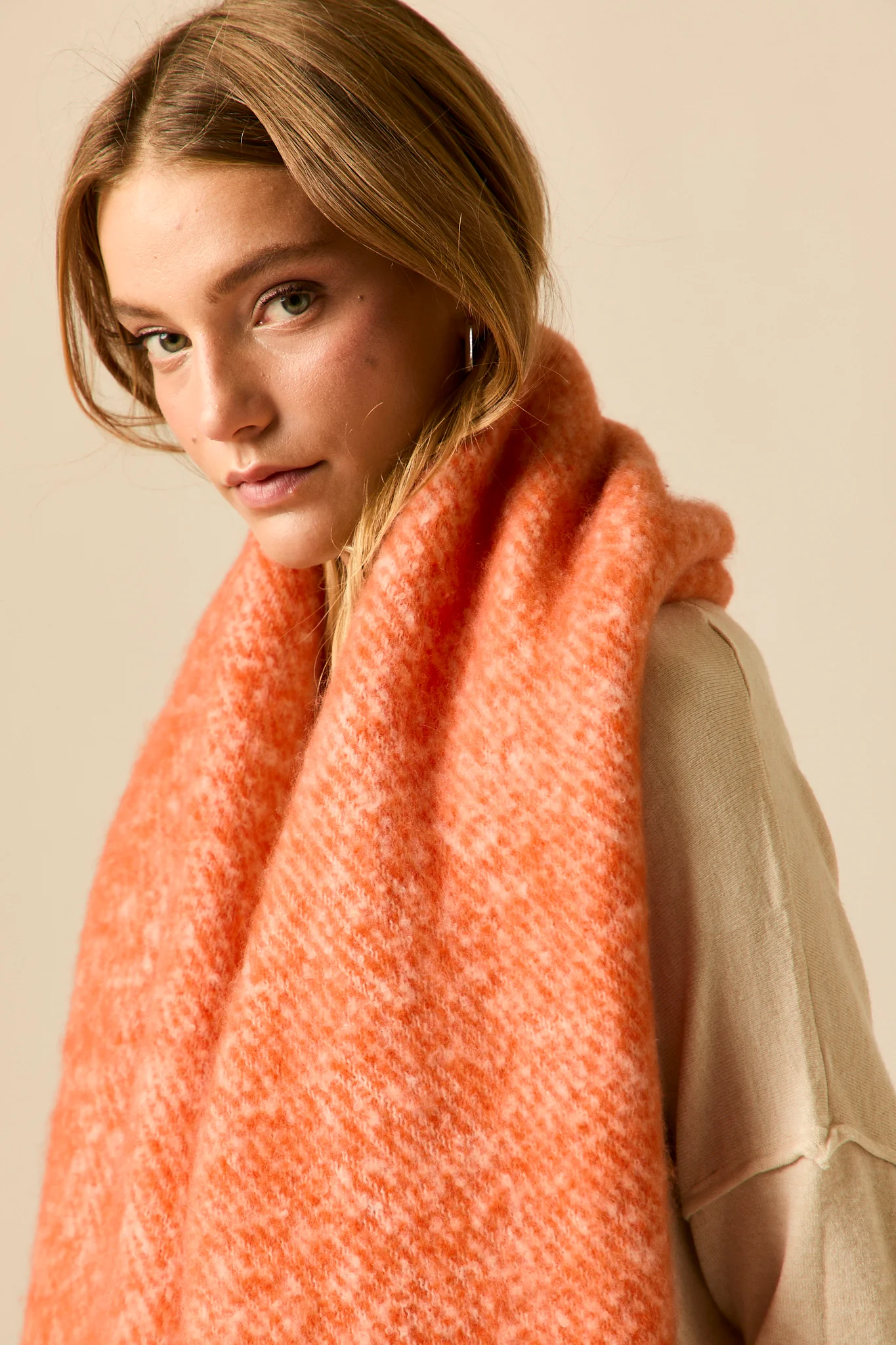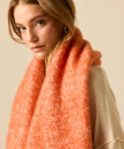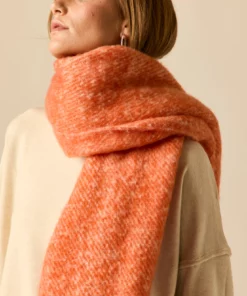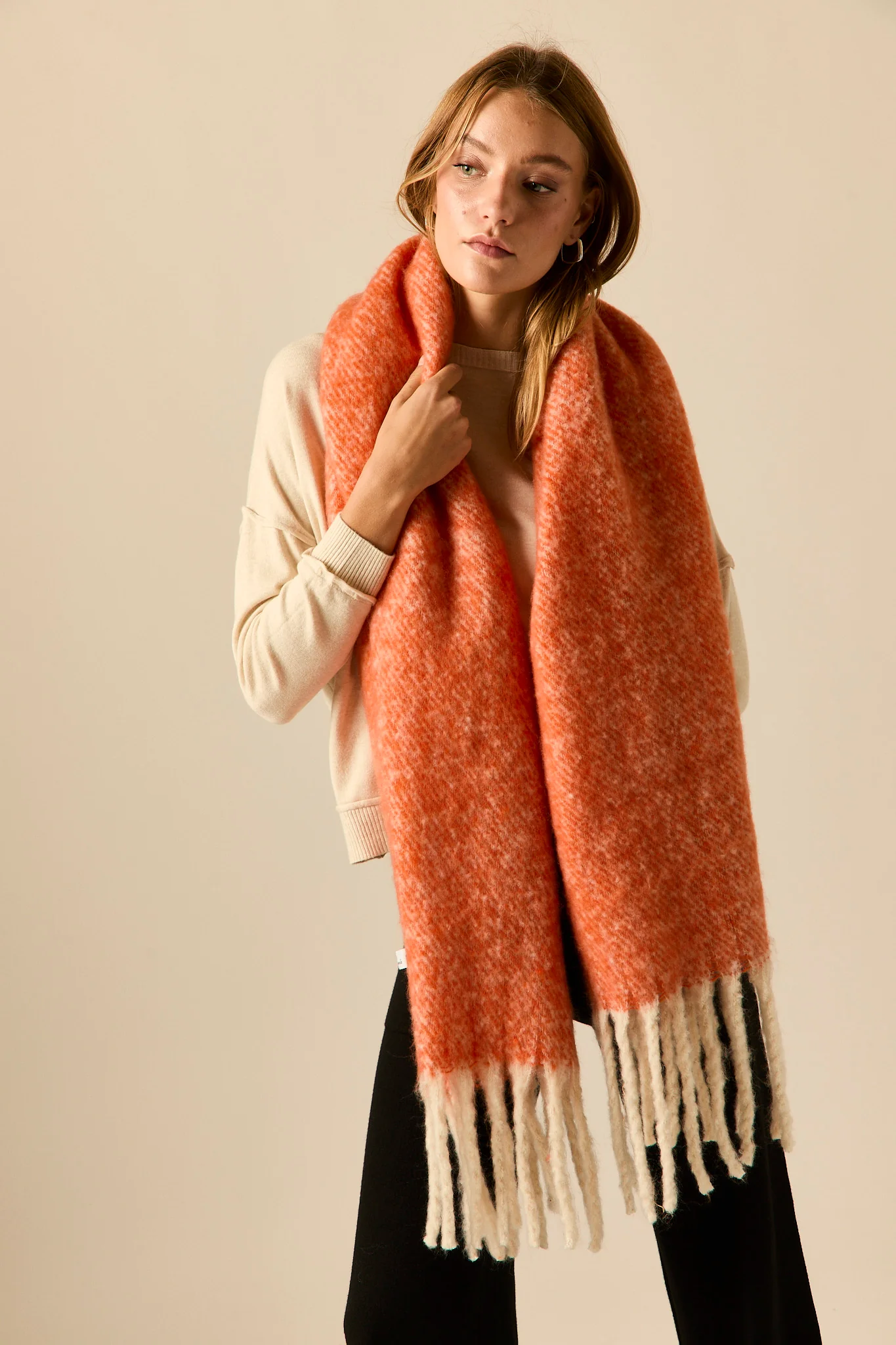 Bufanda mohair en color naranja. Diseño amplio, detalle de flecos en los extremos y tacto suave.
