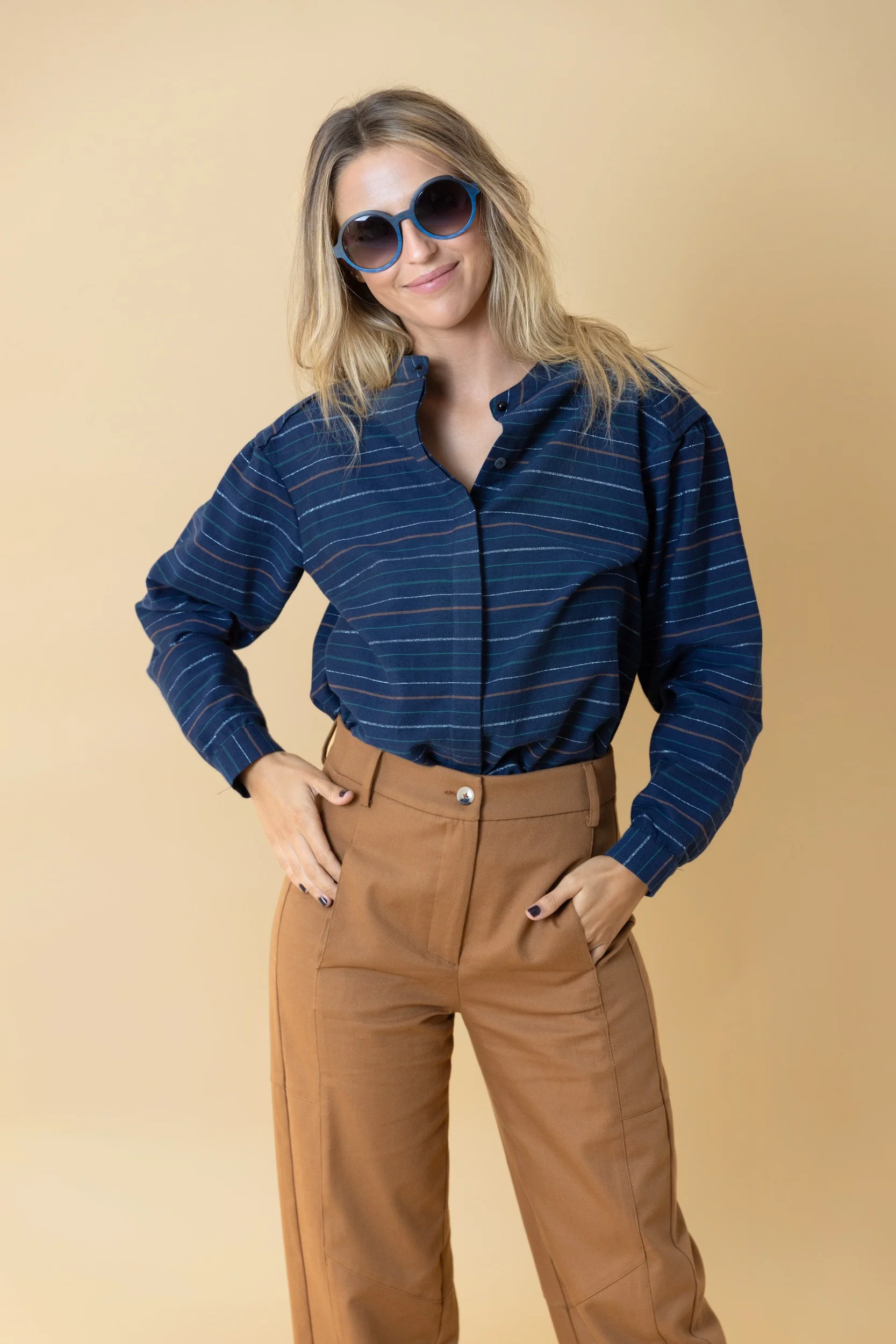 Camisa amplia realizada en un tejido cien por cien algodón y con un hilo lurex.