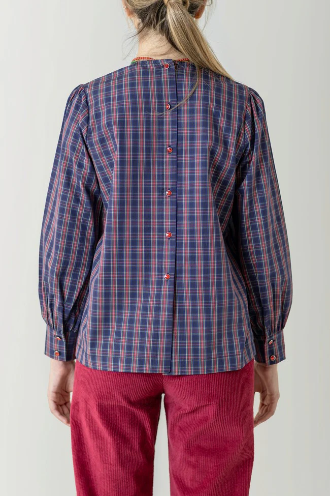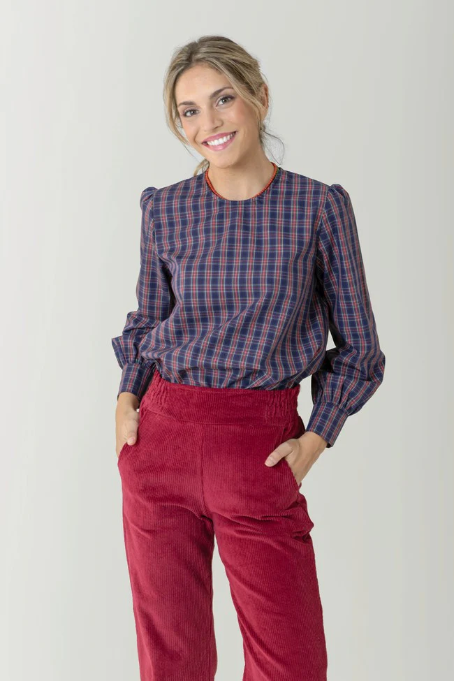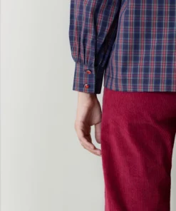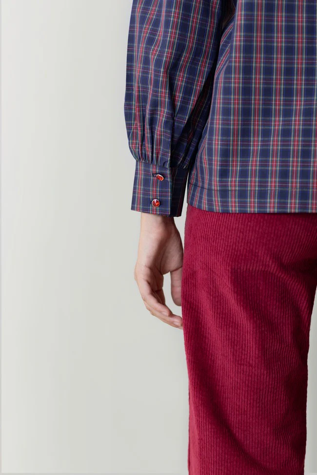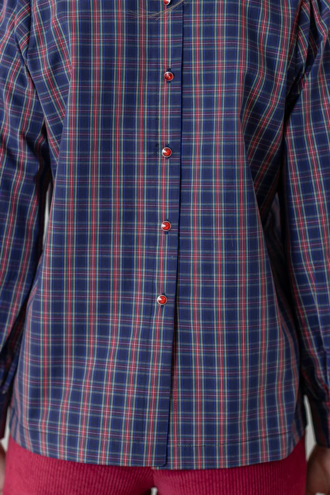 Camisa realizada en tejido de algodón, en escoces en tonos azules, rojos y verdes.