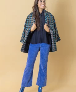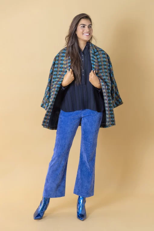 – Tapeta ancha en el delantero con botonadura de color al tono.