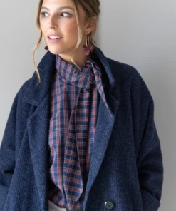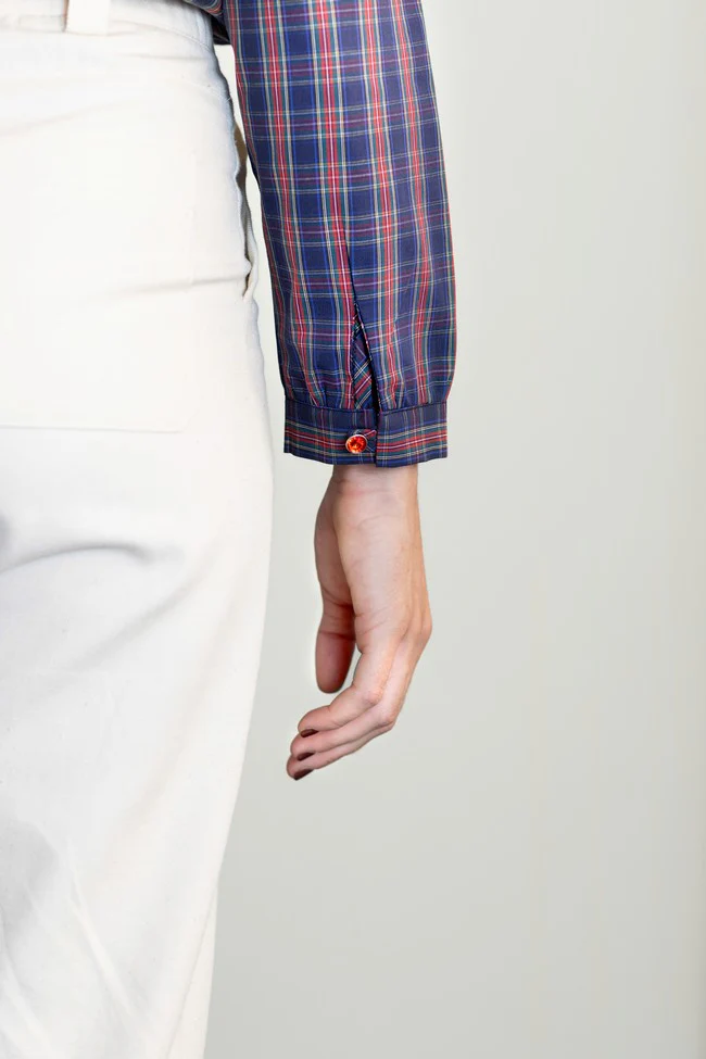 Camisa realizada en tejido de algodón, en escoces en tonos azules, rojos y verdes.