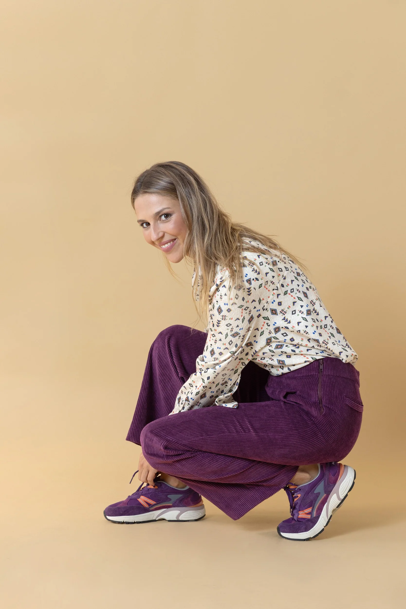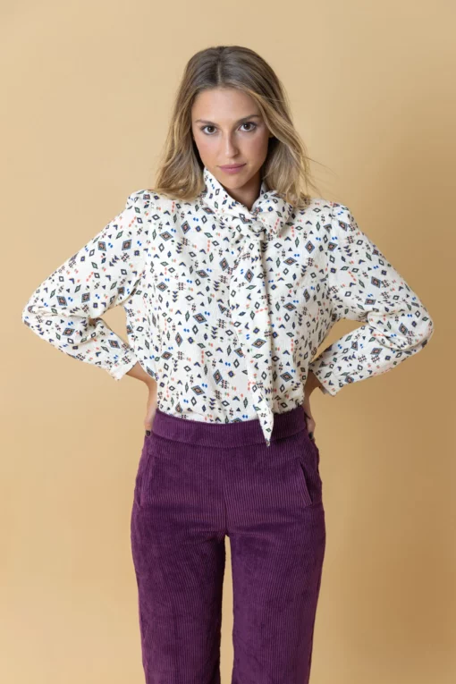 Camisa realizado en un tejido de algodón y viscosa sobre un estampado claro.