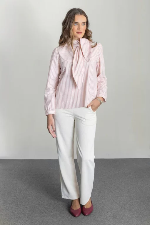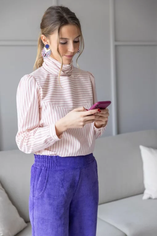 Camisa realizado en un tejido de algodón en color rosa y rayas granate.