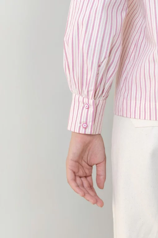 Camisa realizado en un tejido de algodón en color rosa y rayas granate.