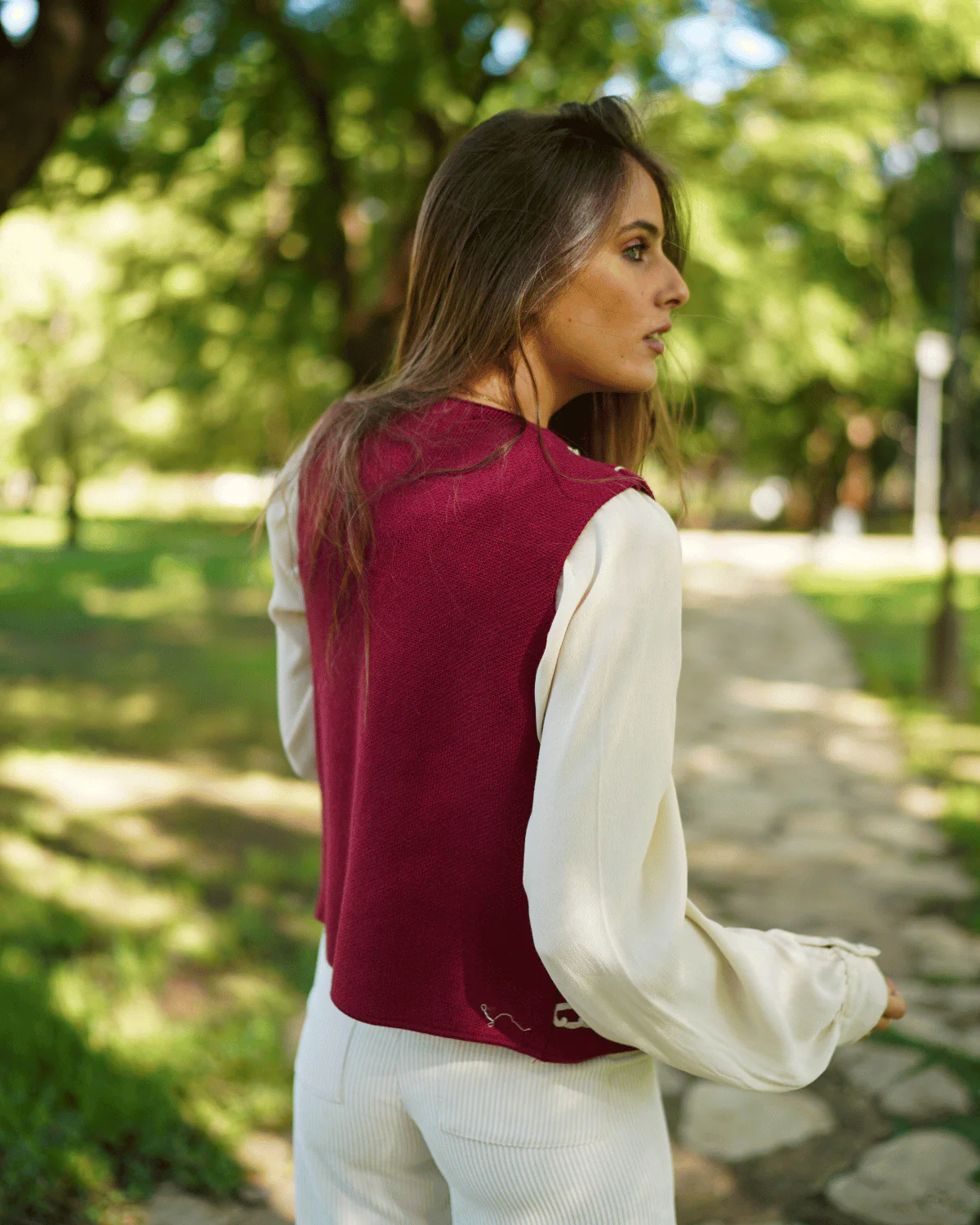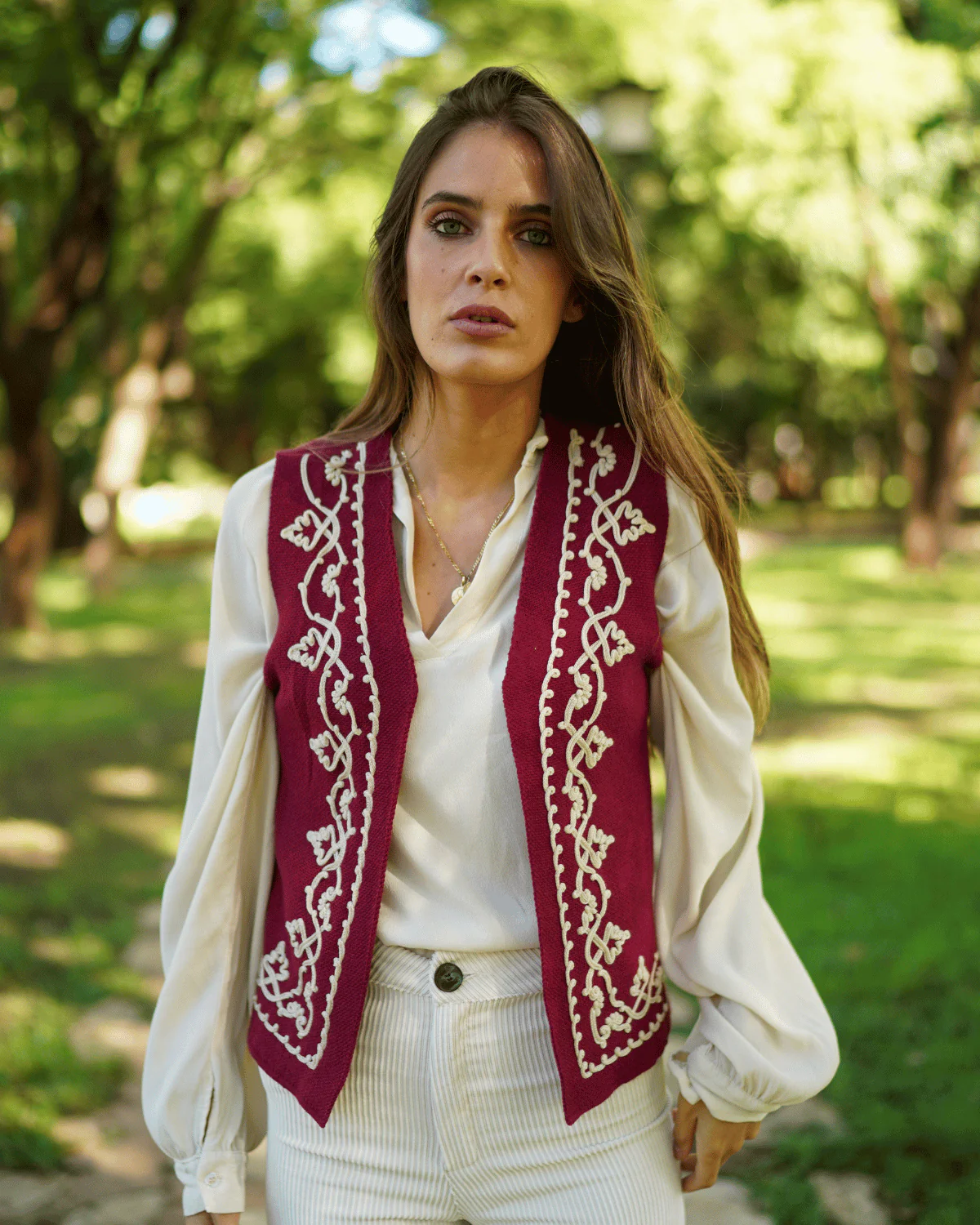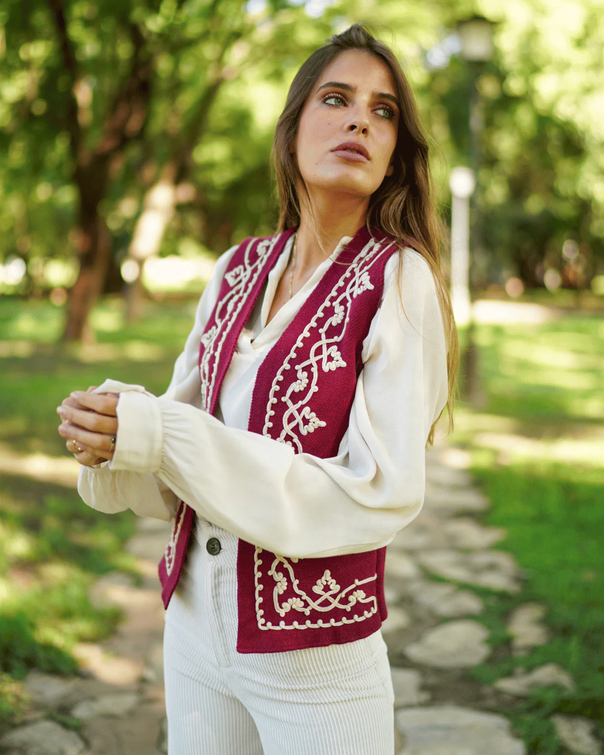 - Chaleco de punto muy gustoso abierto con detalle de bordados.