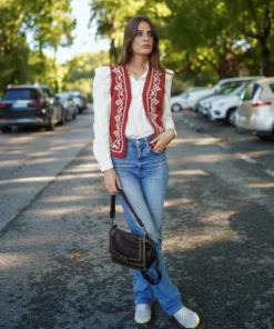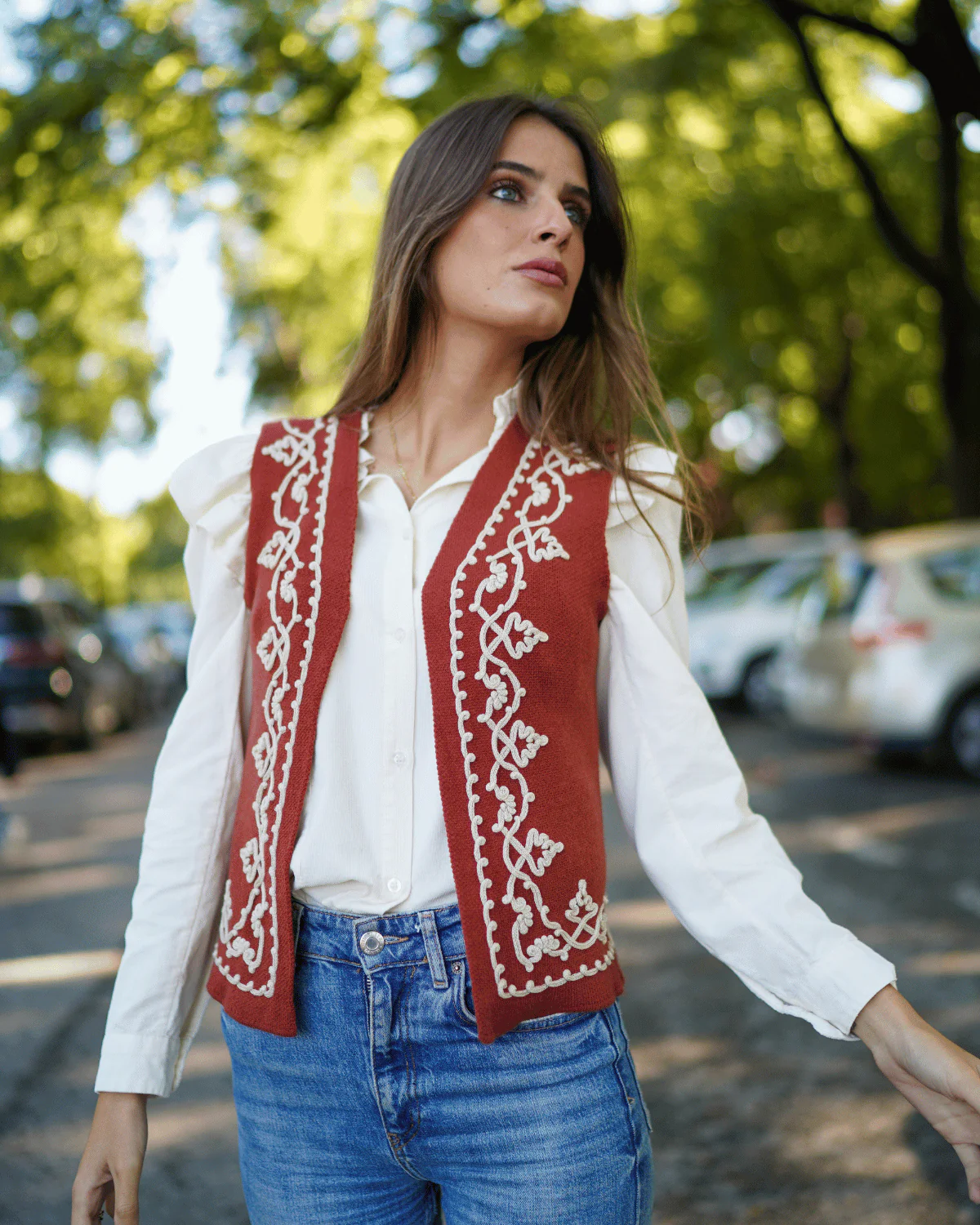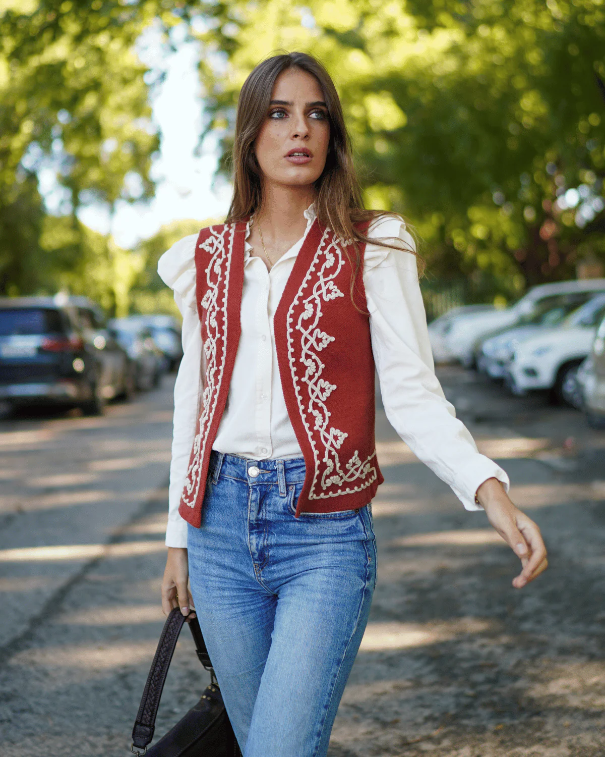 - Chaleco de punto muy gustoso abierto con detalle de bordados.