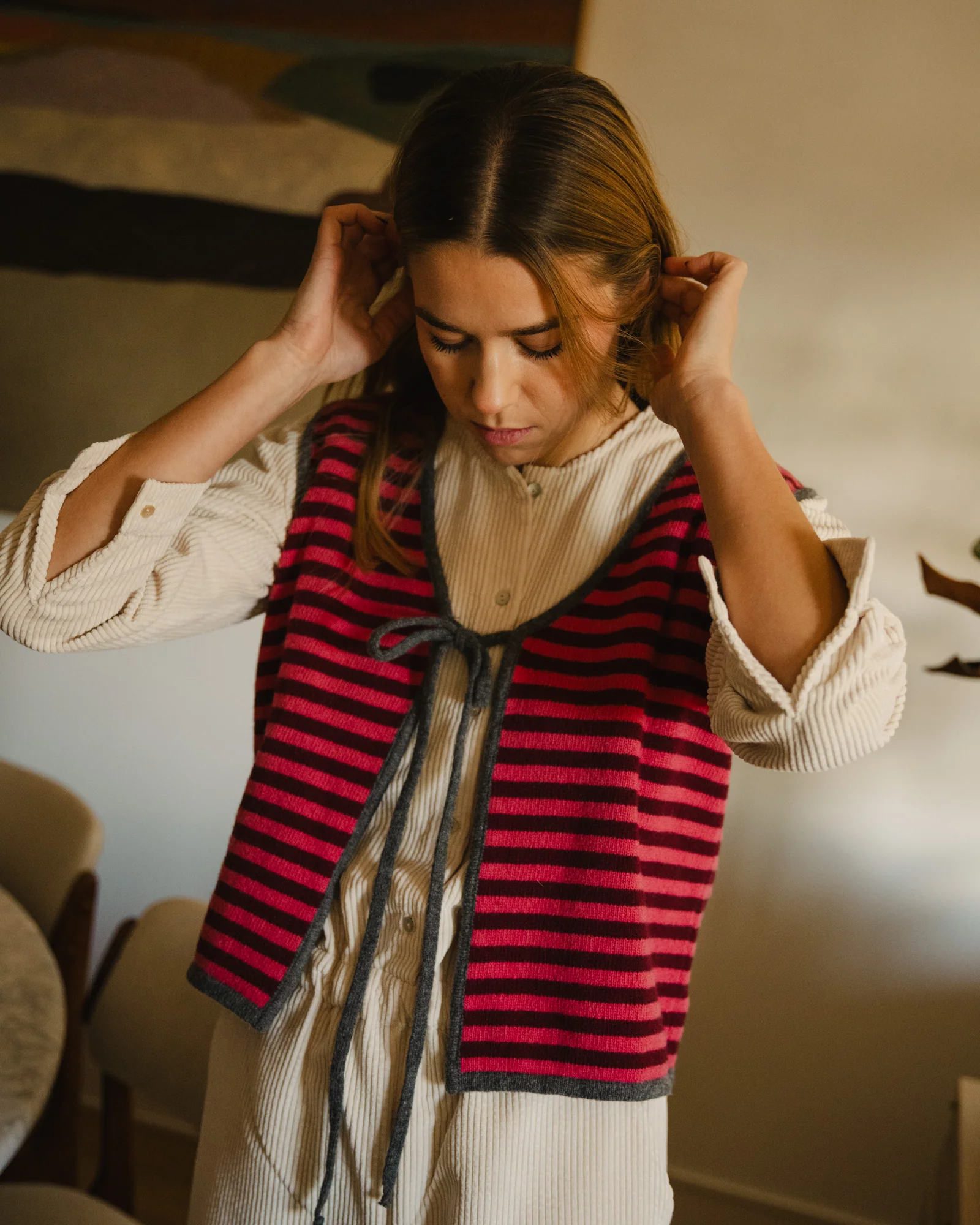 Se puede lavar en lavadora y planchar. Como siempre, os recomendamos utilizar agua fría, un programa suave y no usar secadora para que vuestras prendas duren más.