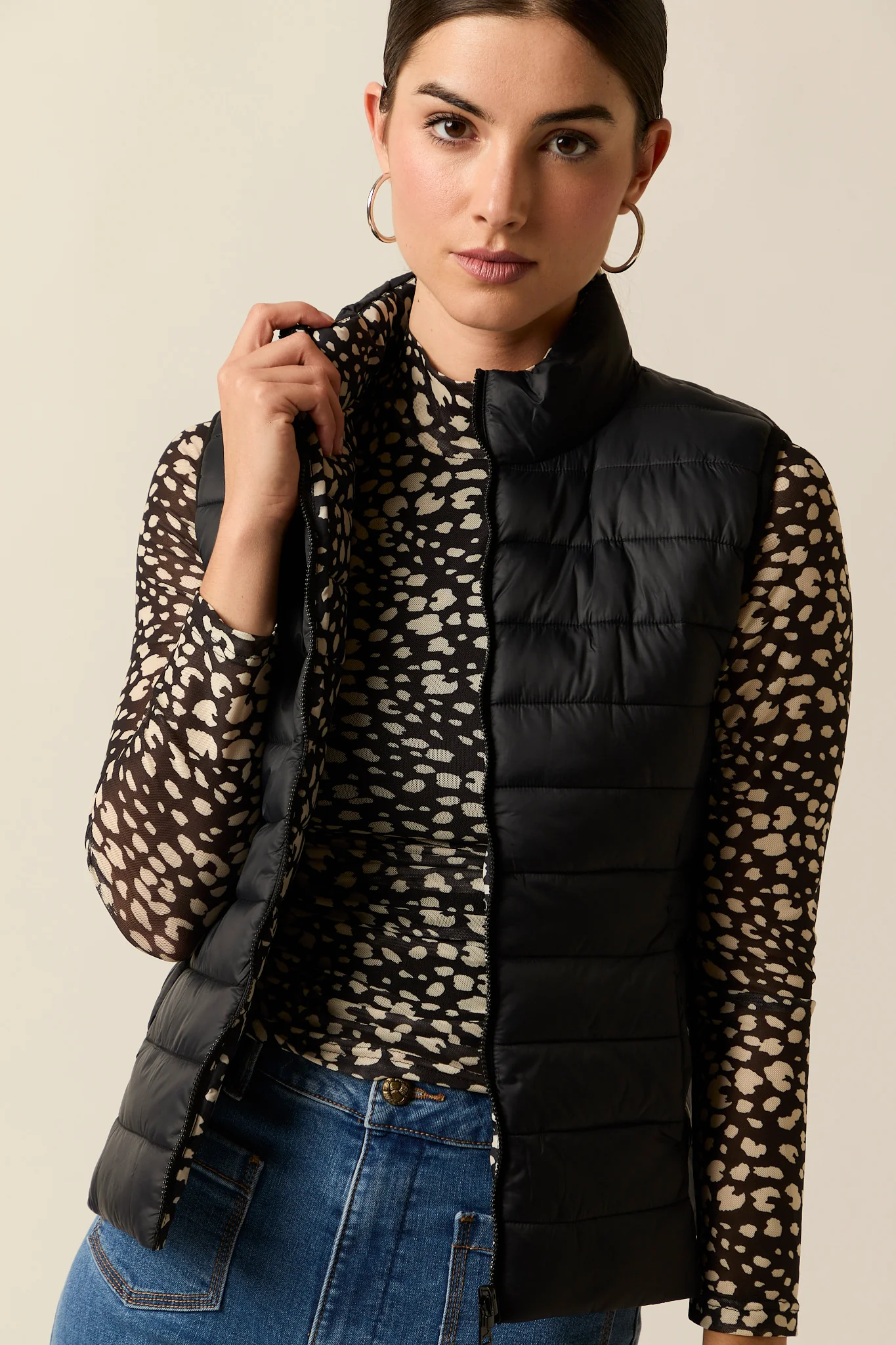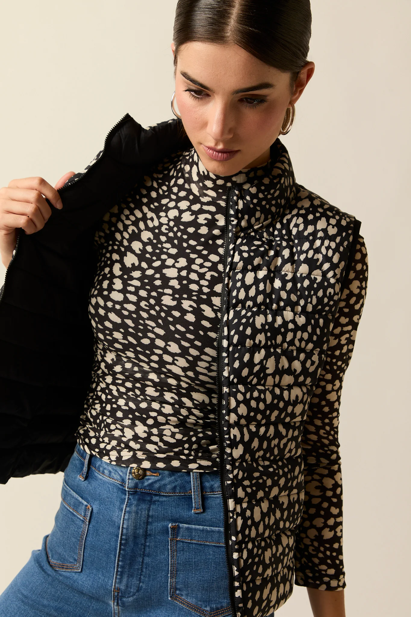 Chaleco plumas reversible cow print