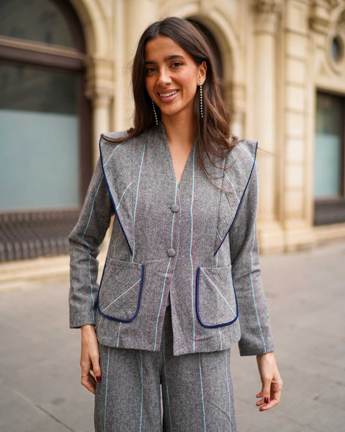 - Chaqueta corta con estampado de espigas y manga larga.