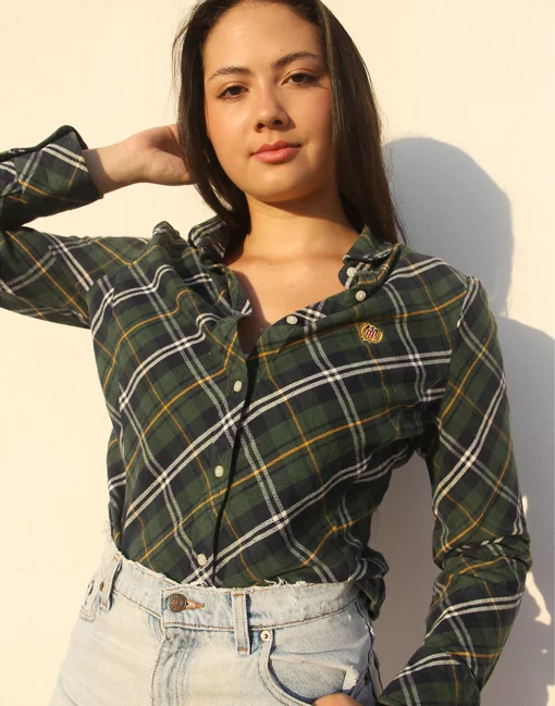 Vintage check shirt in a dark green, navy, yellow and white check.