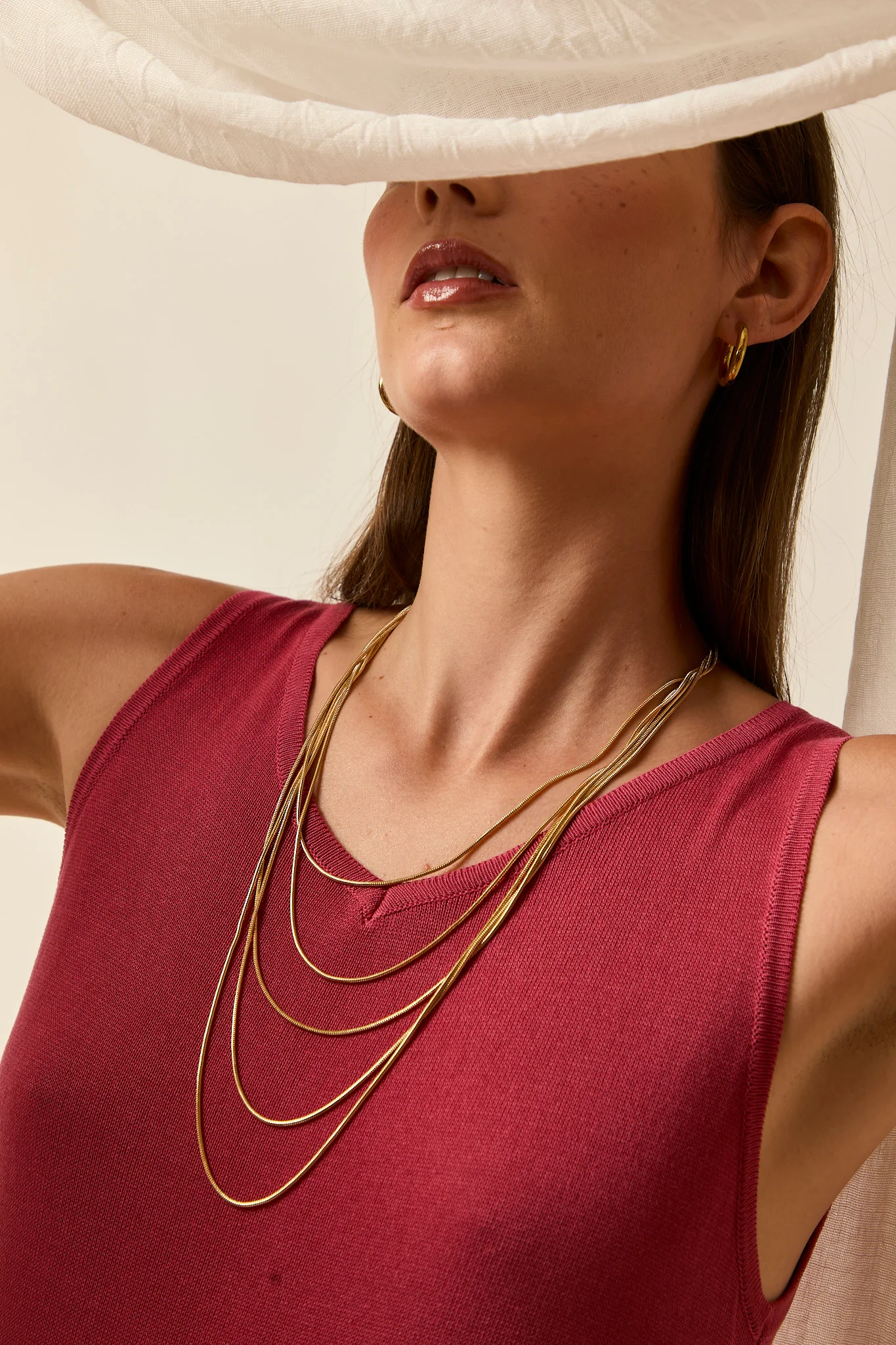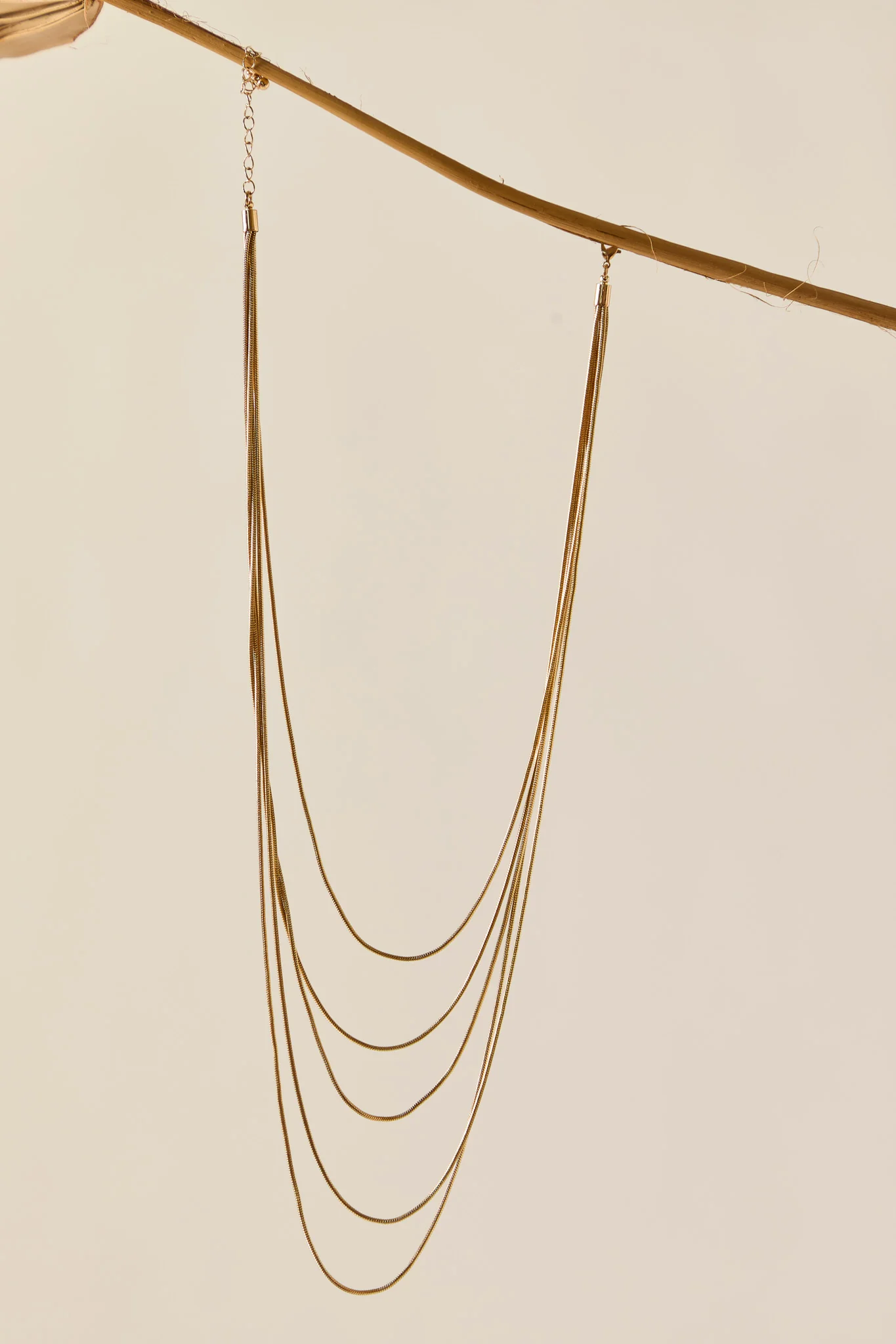 Collar de acero largo de cadenas de diferentes alturas en color dorado con ci. Un complemento perfecto para looks arreglados y casual.