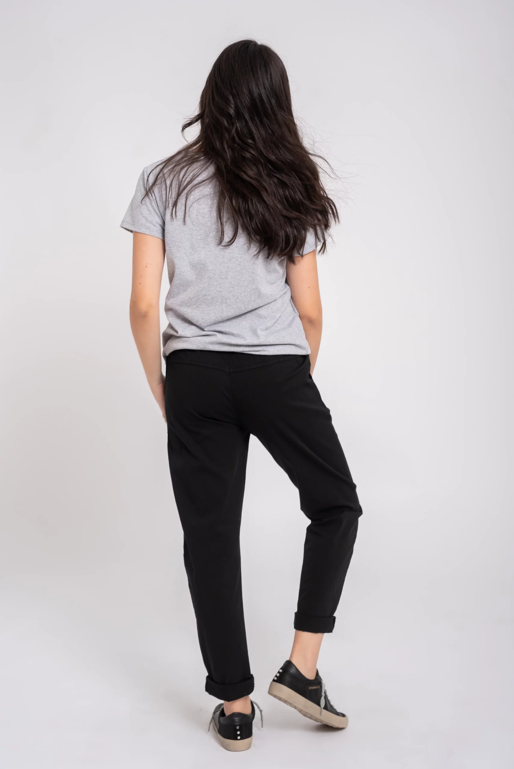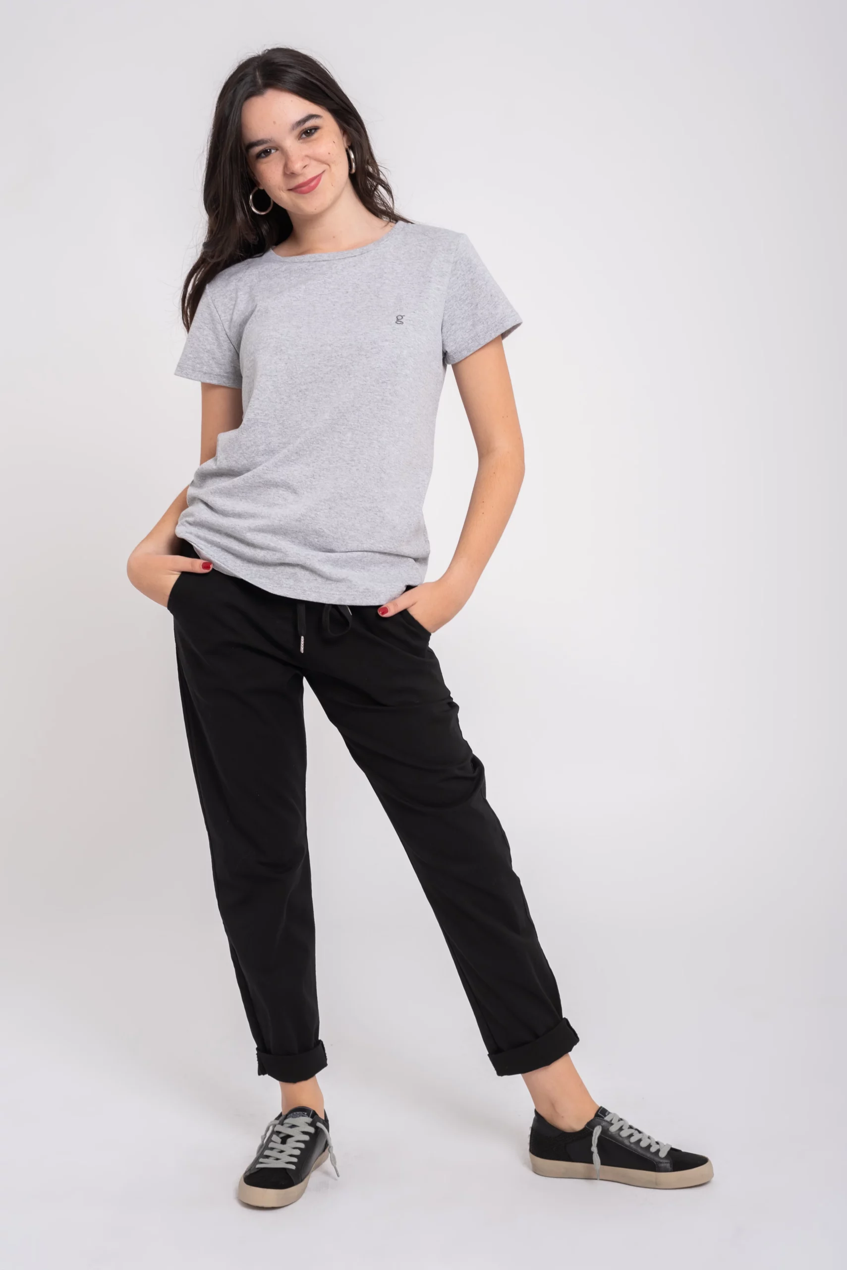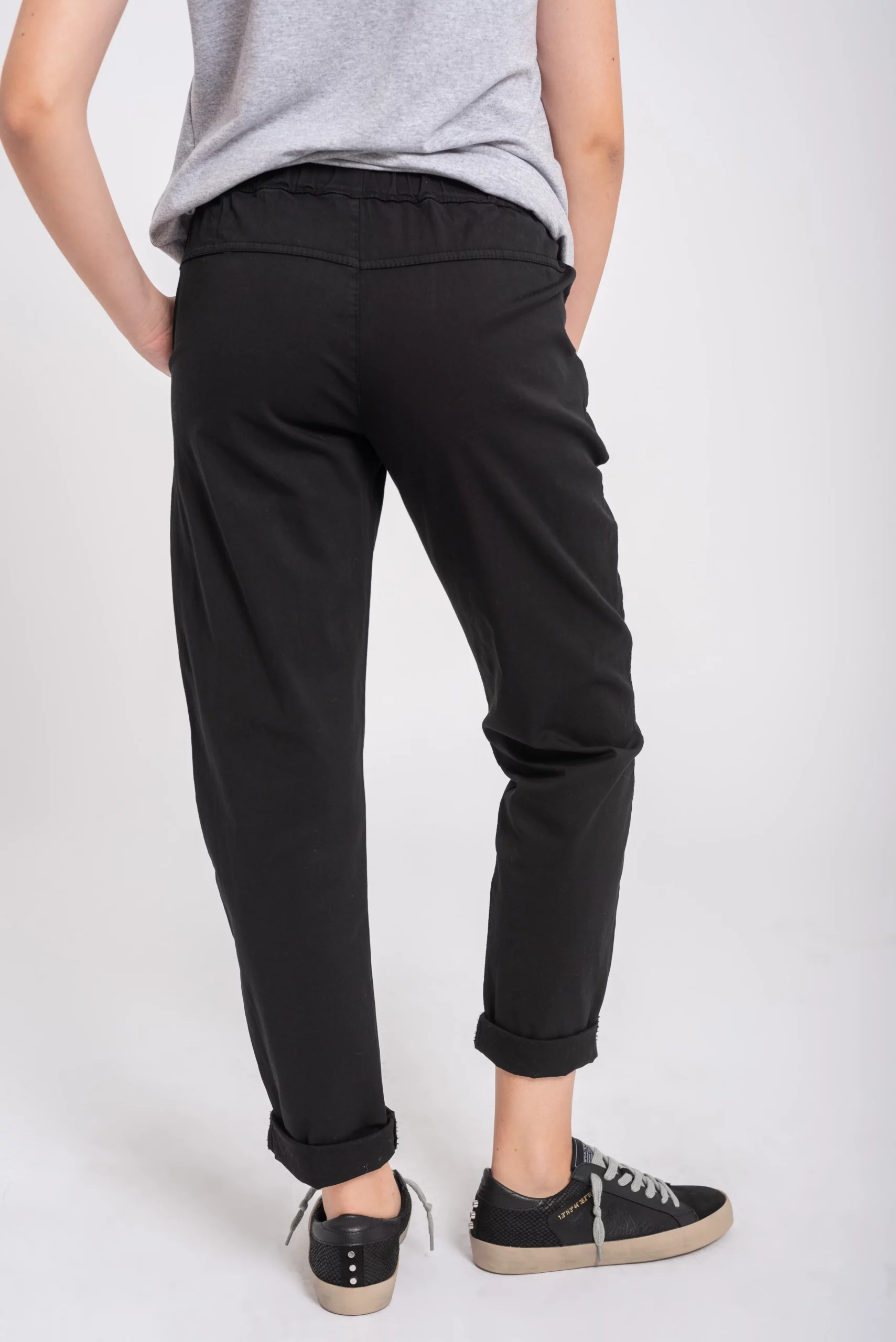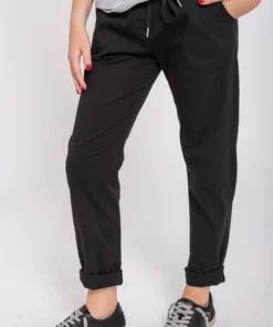 Pantalón tipo chino, con goma en cintura y cordón de ajuste. Bolsillos laterales. Cómodo y perfecto para toda la temporada. Básicos imprescindibles.