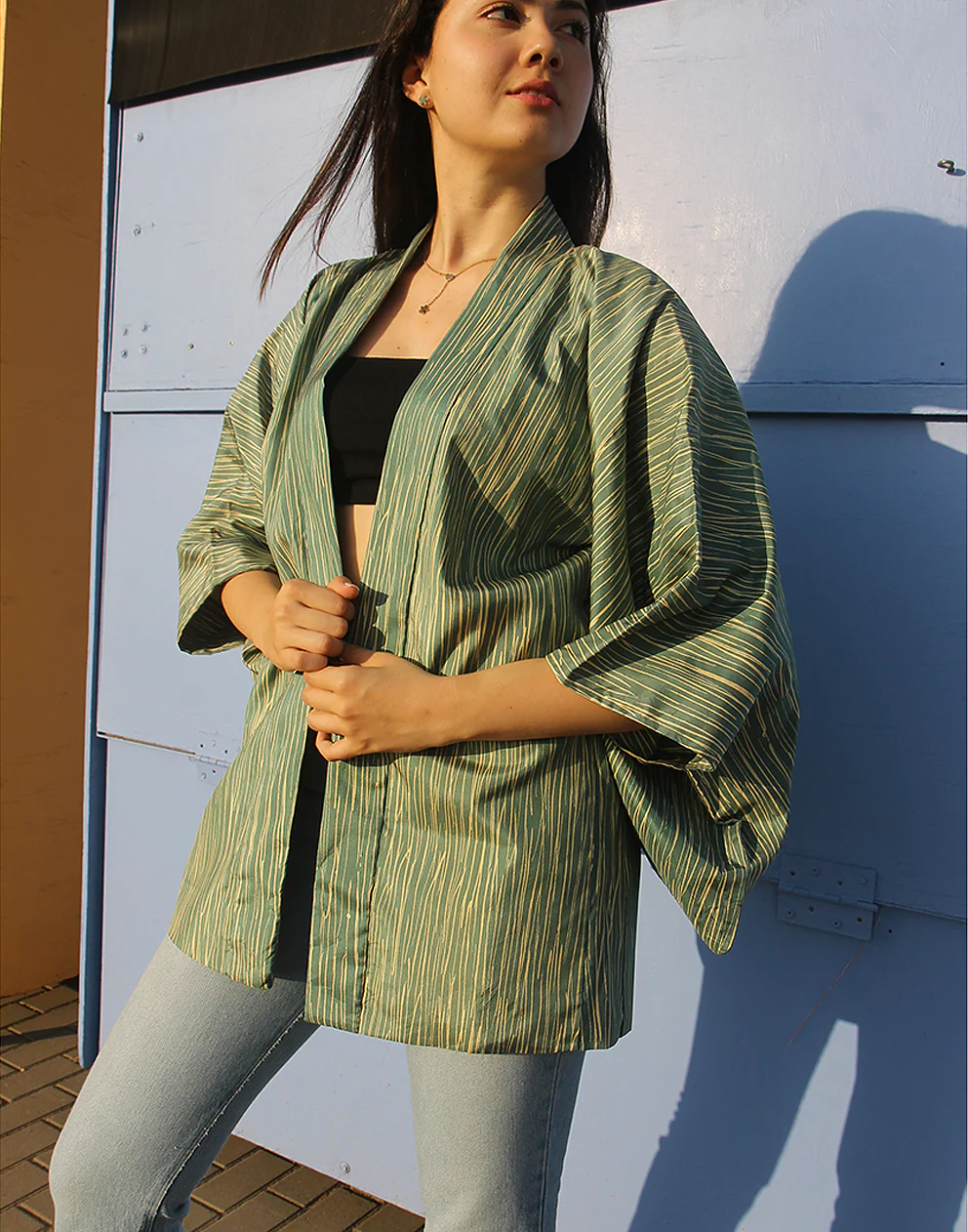 Measurements – 46″(117cm) bust – 13″(33cm) sleeve length – 30″(76cm) length.