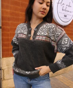 Measurements – 44″(112cm) bust – 20″(51cm) sleeve length – 25″(64cm) length.