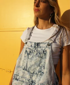 Measurements – 8.5″(22cm) top bib width – 11″(28cm) bib height – 40″(102cm) waist – 44″(112cm) hips – 12.5″(32cm) outer leg.
