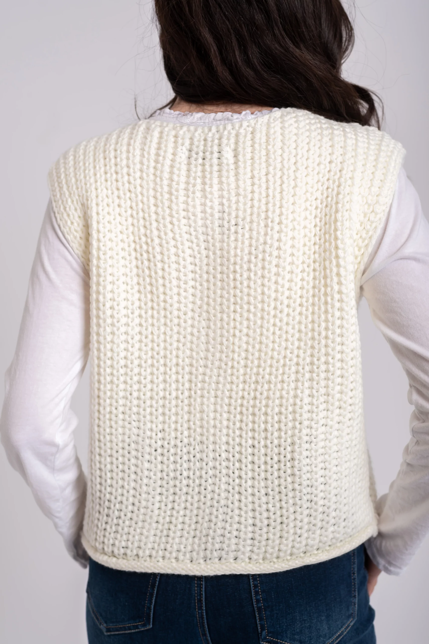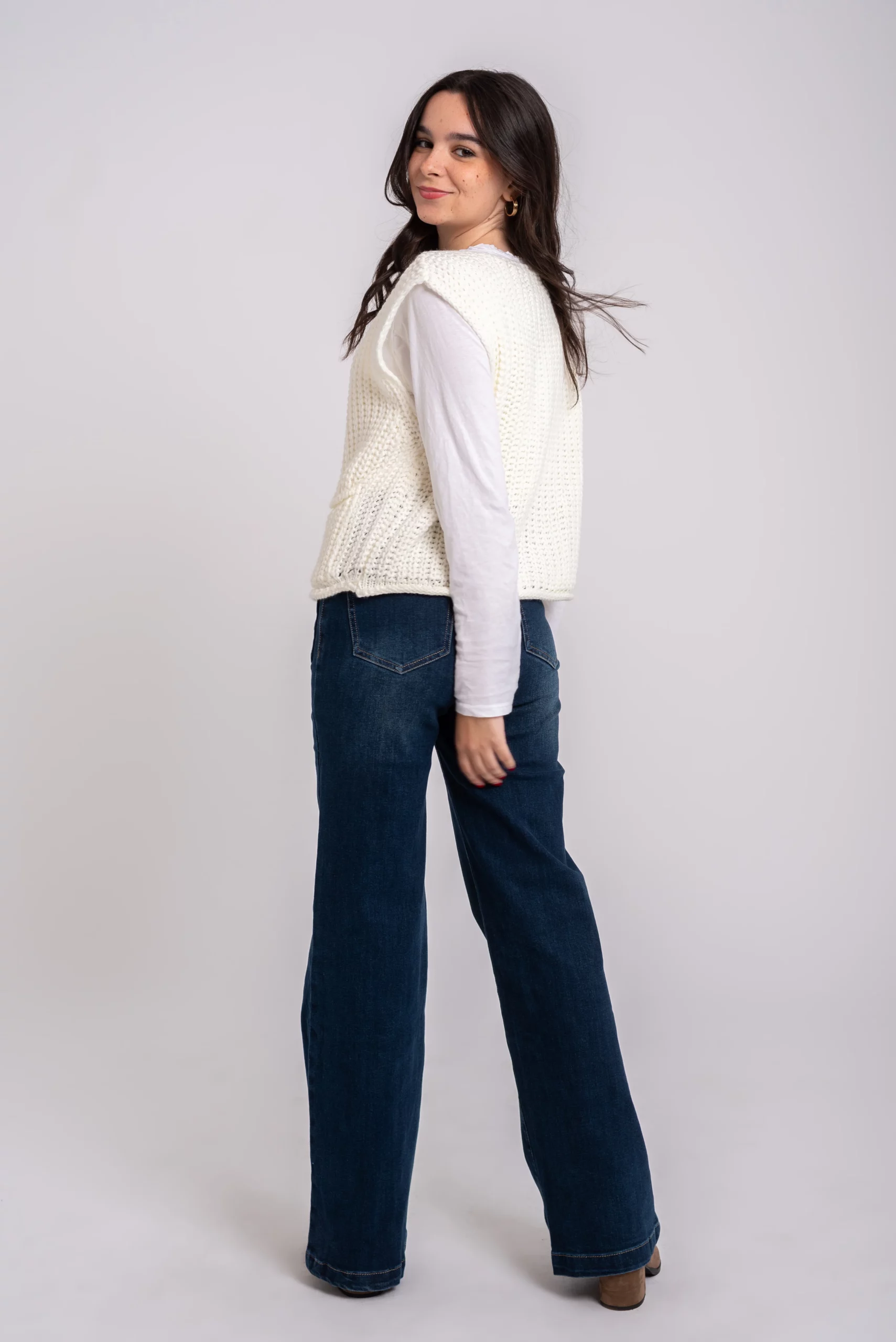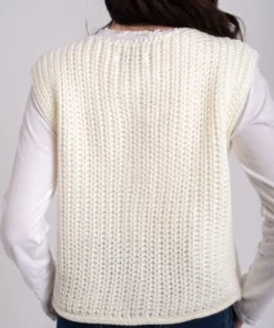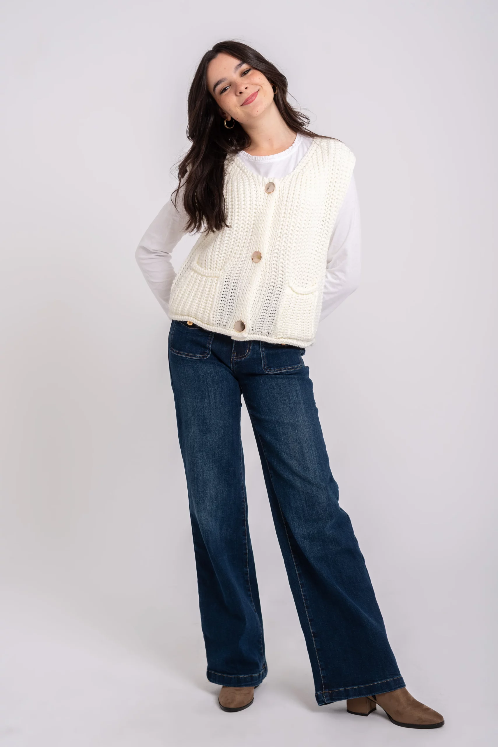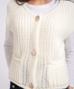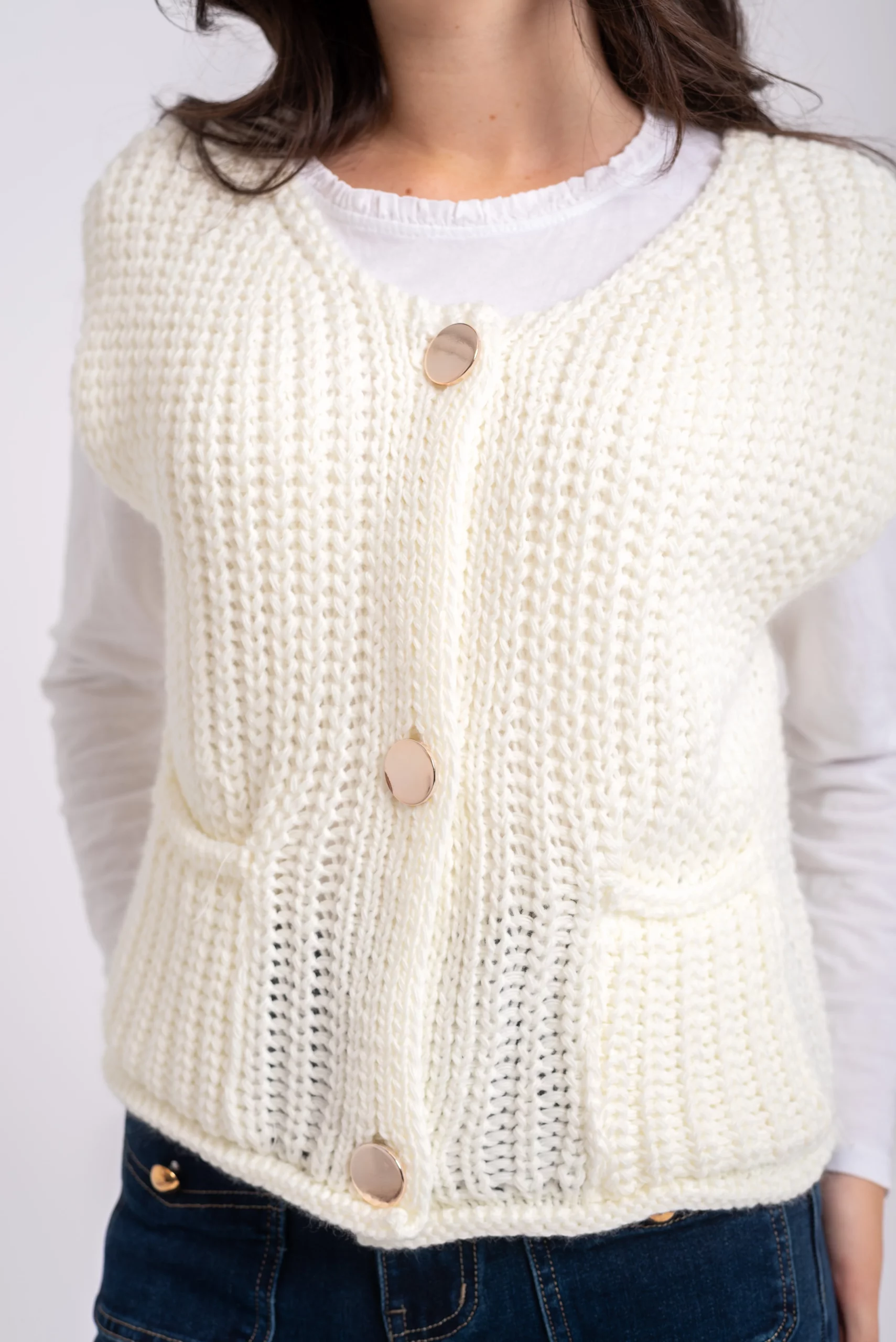 Chaleco / Top de punto grueso. Botones dorados. Bolsillos delanteros de plastron. Tendencia.
