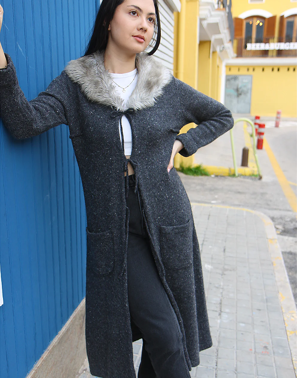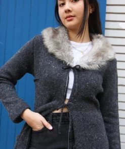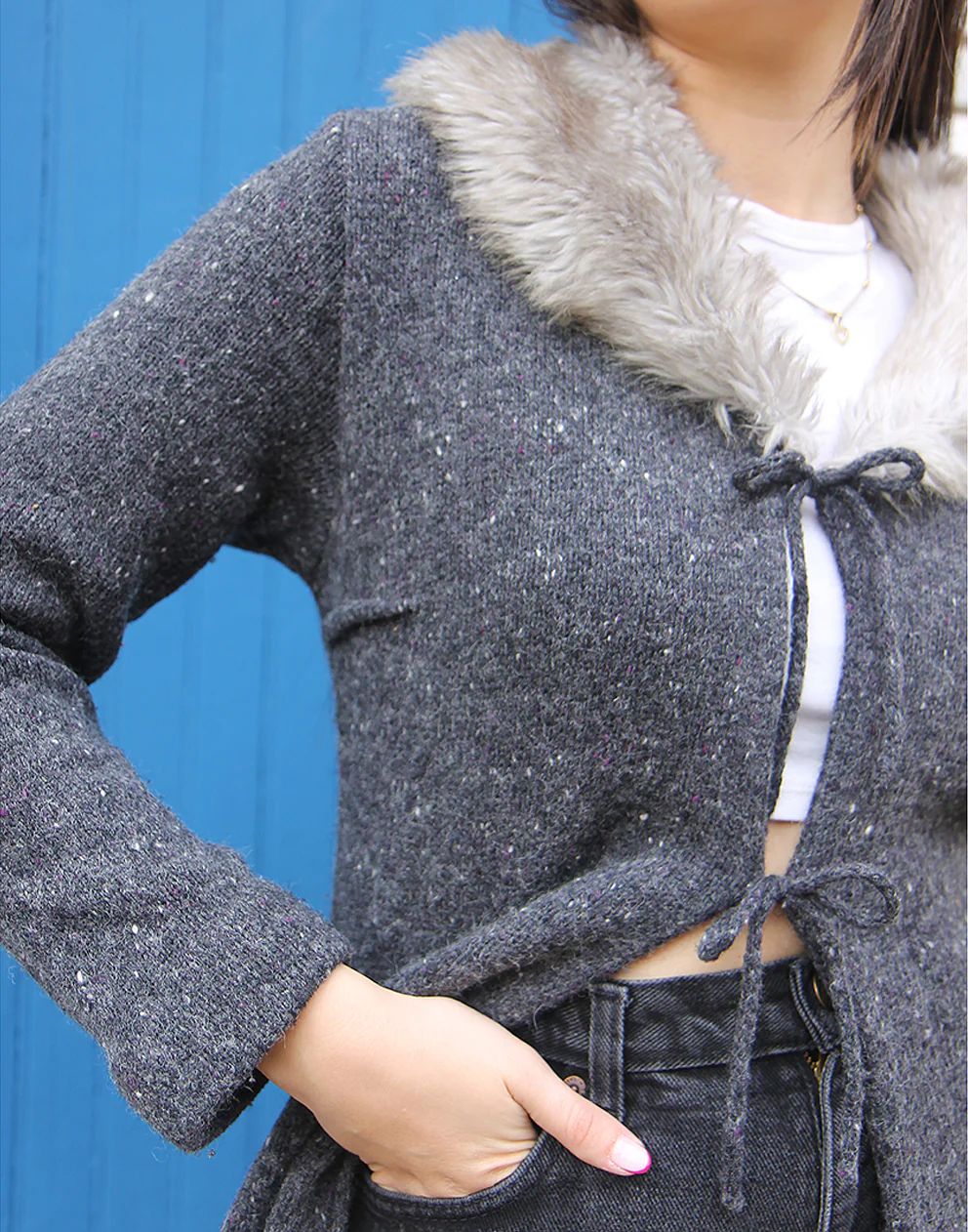 Faux fur collar.