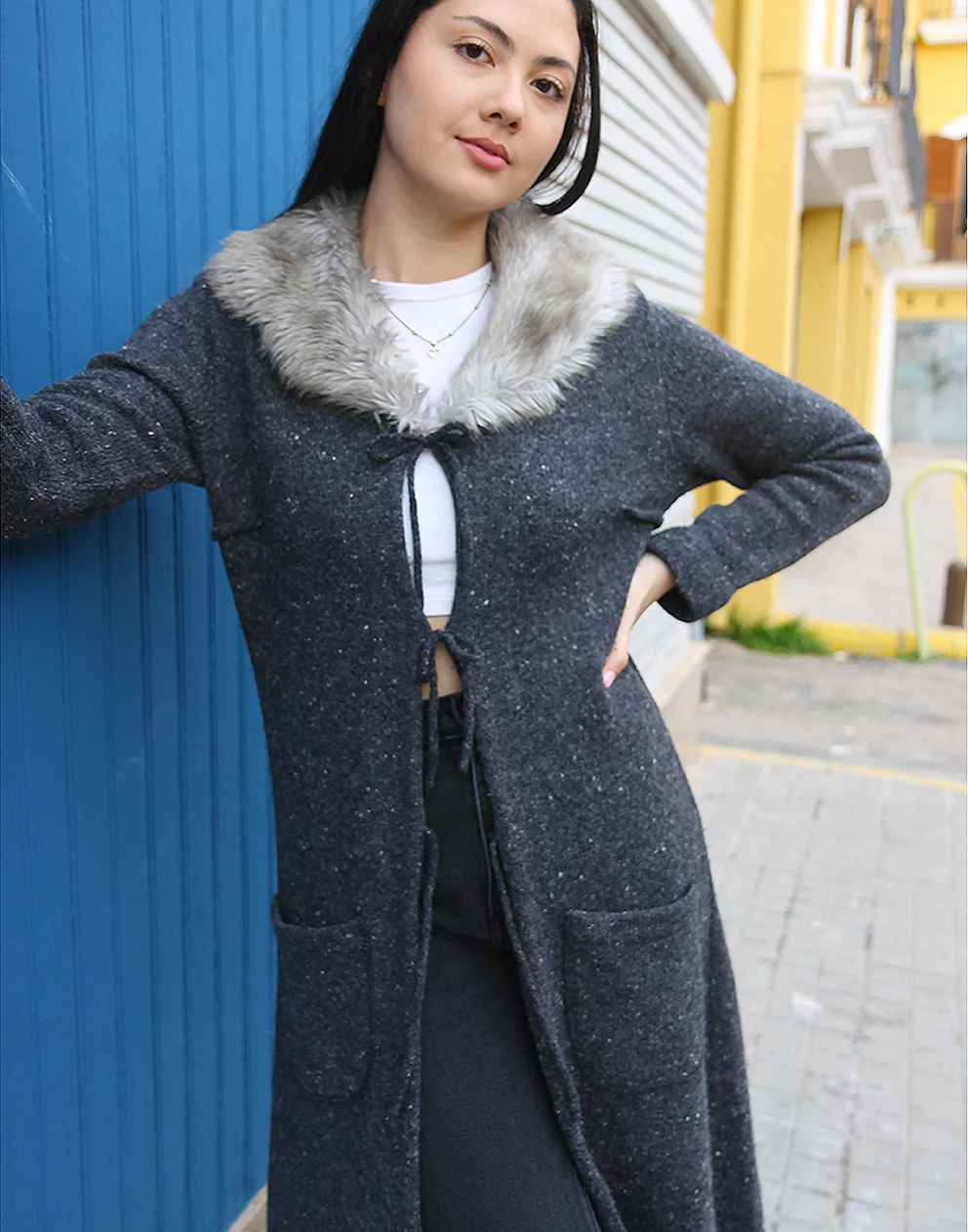 Long cardigan in grey.