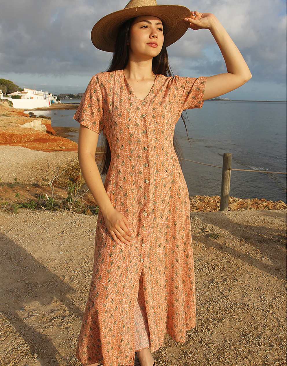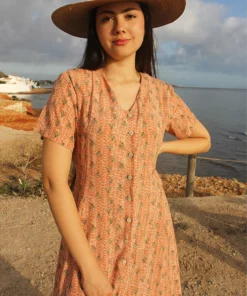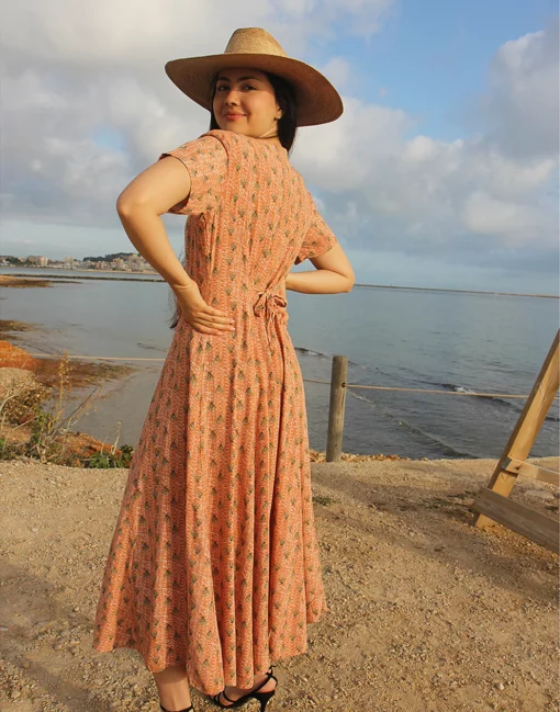 Measurements: 40″/ 102cm bust – 34″ / 86cm waist – 48″ / 122cm hips – 8″ / 20cm sleeve length – 51″ / 130cm dress length.