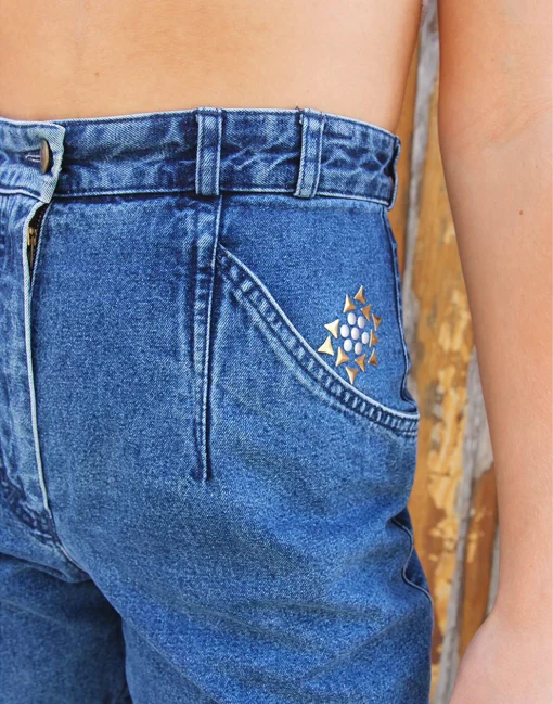 Actual measurements – 26″(66cm) waist – 34″(86cm) hips – outer leg 18″(46cm).
