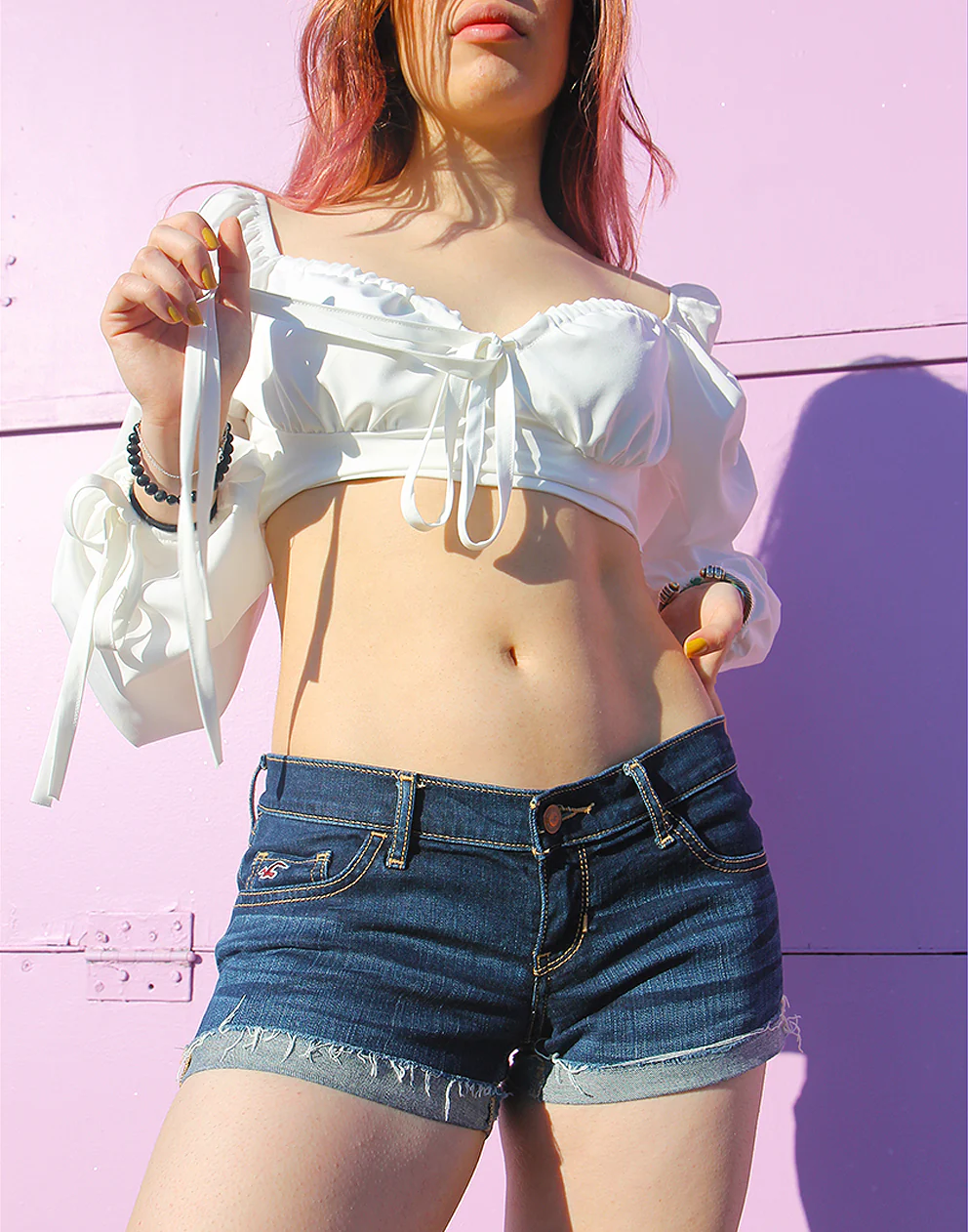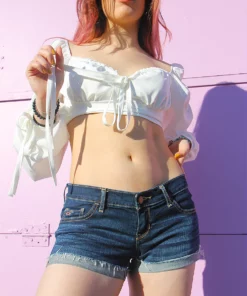 Actual measurements – 26″(66cm) waist – 32″(81cm) hips – outer leg 9″(23cm).