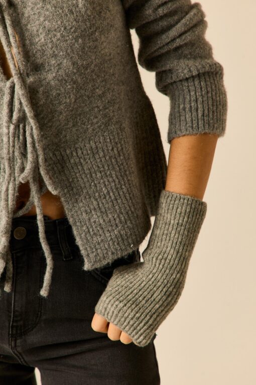 Guantes estilo mitón de punto en color gris con detalle acanalado.