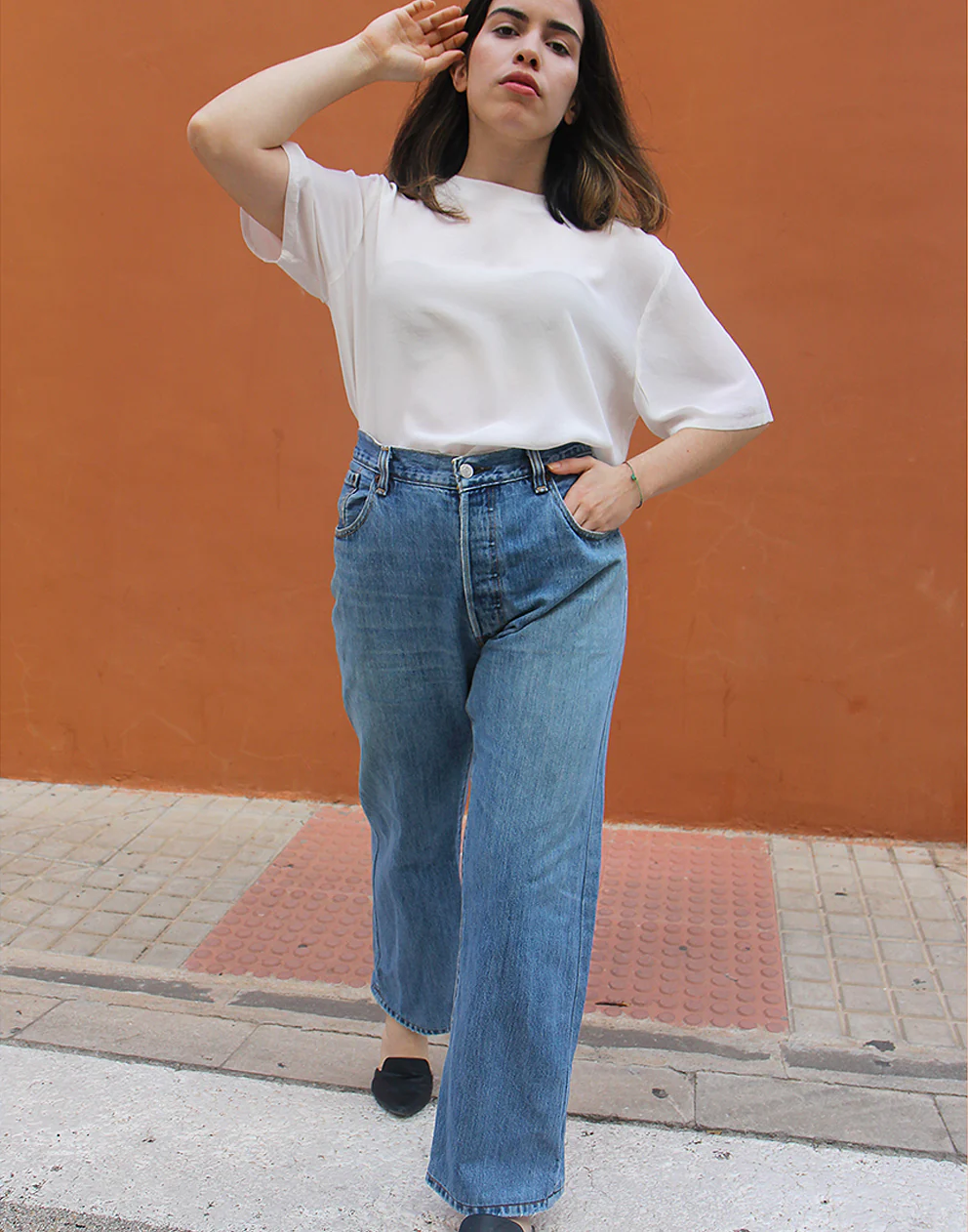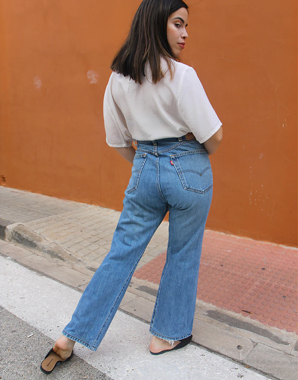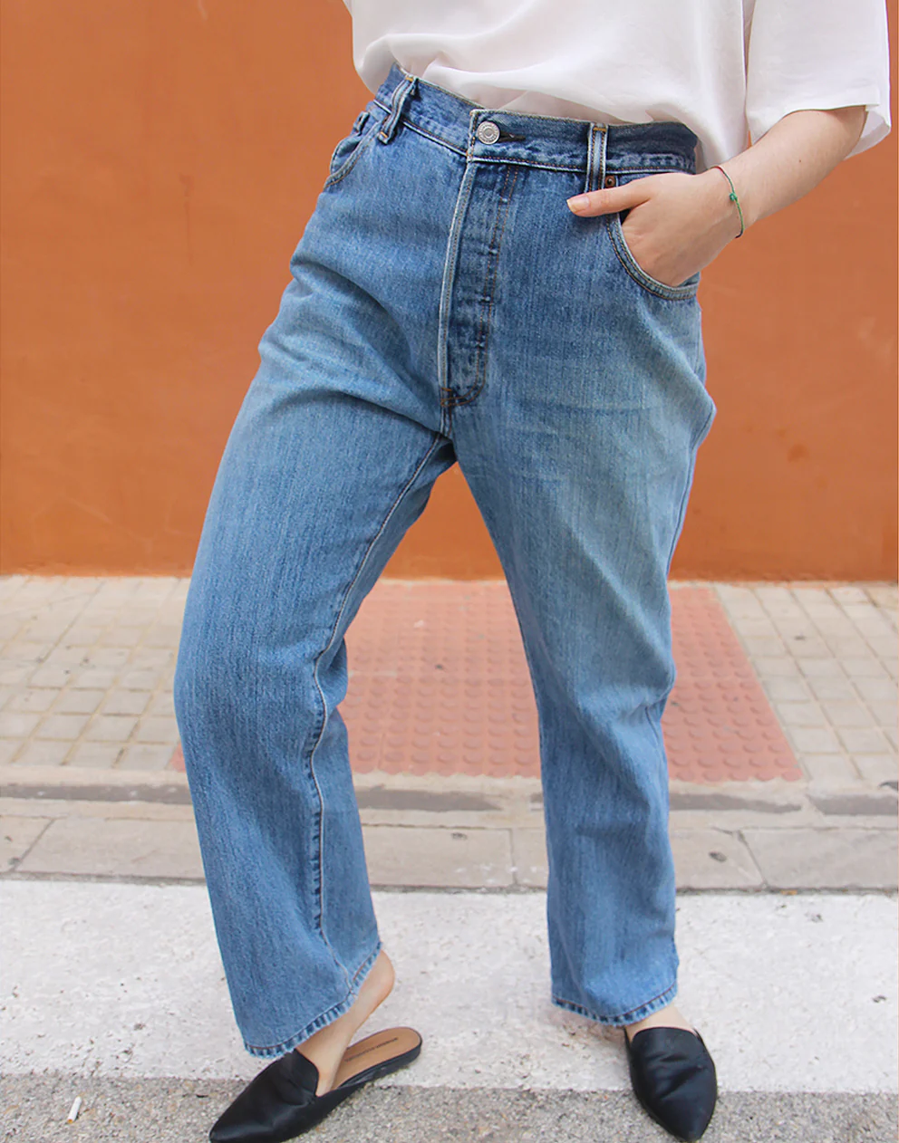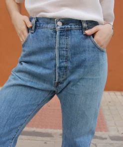 Original vintage Levi’s 501 Mom jeans in a mid wash blue denim.