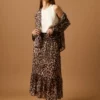 Pantalón largo de fluido en color kaki con detalle de rayas en hilo metalizado dorado. Diseño recto, tiro alto, cintura elástica y cierre de lazo.