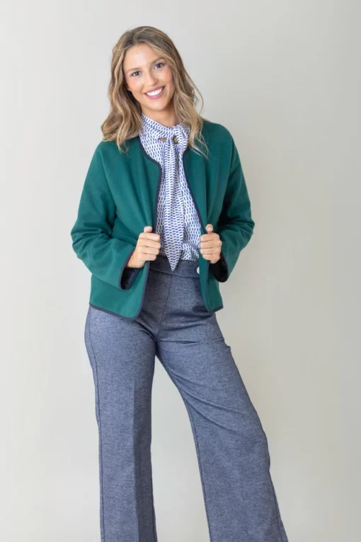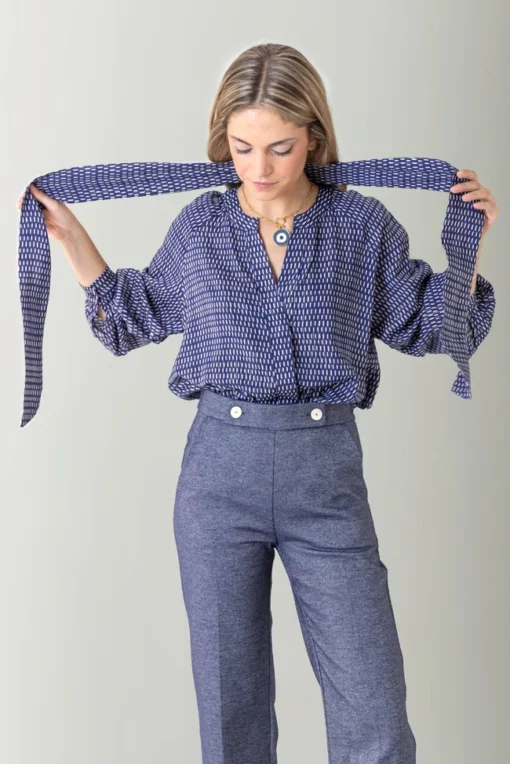 Pantalón realizado en tejido de algodón suave en tono jeans jaspeado.