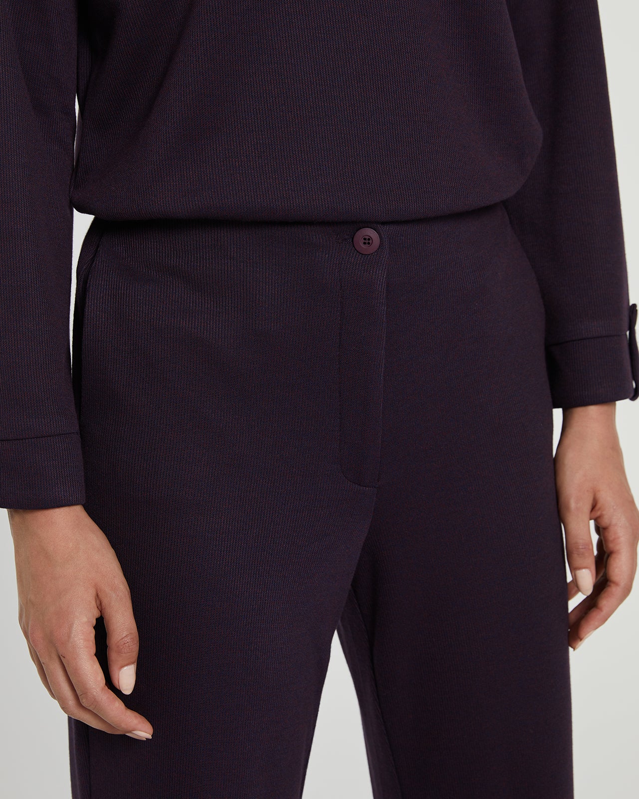 Pantalón de punto de canalé de tiro medio. Goma en la cintura, cierre con cremallera y botón. Bolsillos en los lados. Si lo combinamos con el jersey del mismo punto obtenemos un conjunto cómodo, moderno y con el estilo.