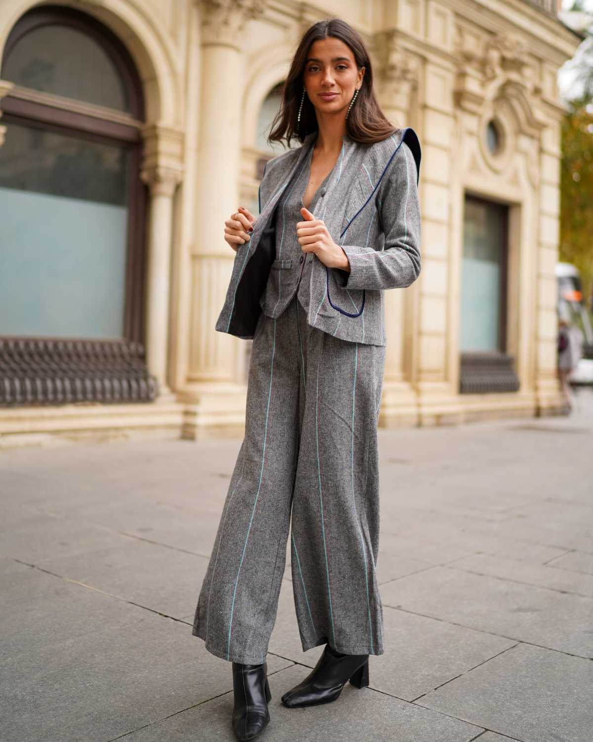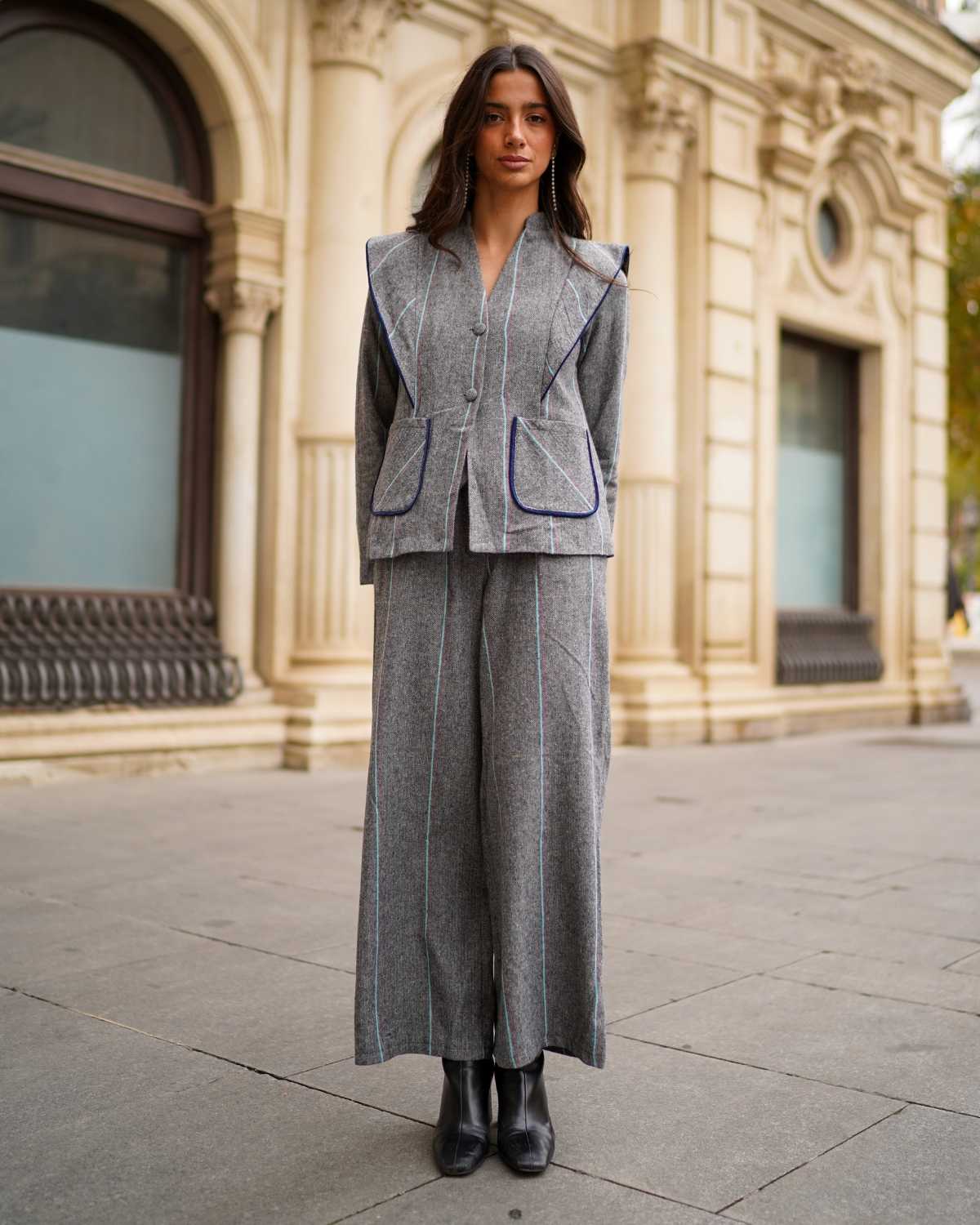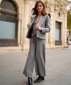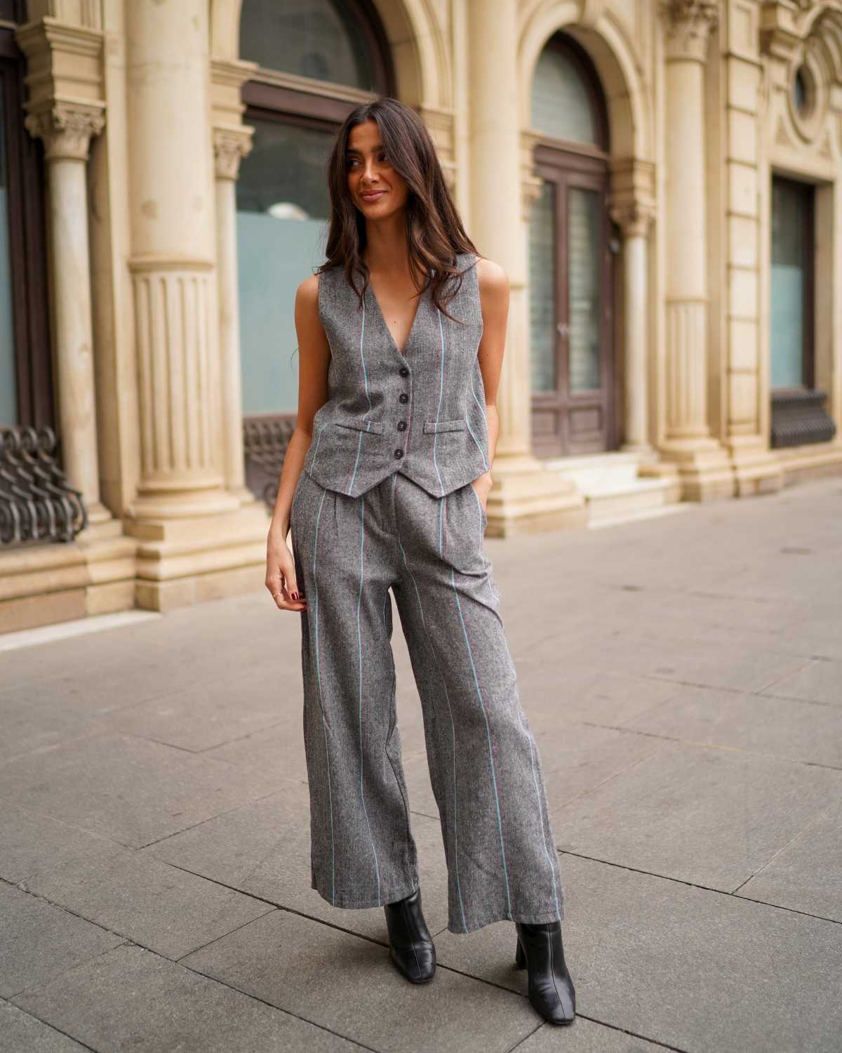 - Pantalón recto de tiro alto con caída suave de tejido grueso.