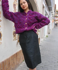 Measurements: 40″/ 102cm bust – 28″/ 71cm sleeve length – 23″ / 58cm top length.