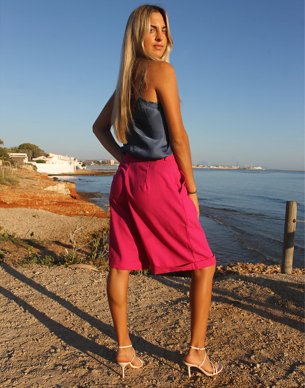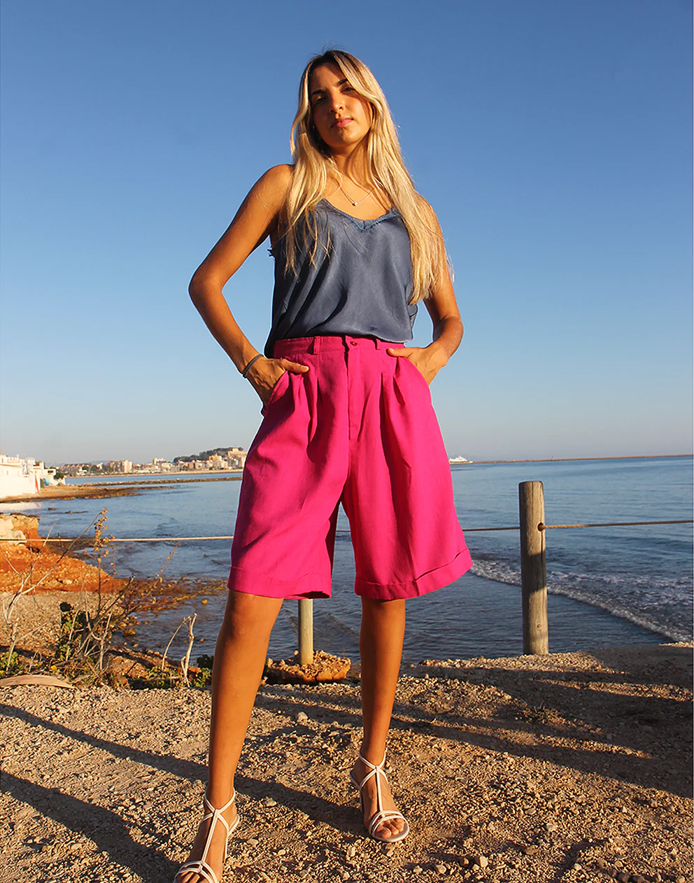 Measurements: 30″ / 76cm waist – 42″ / 107cm hips – 14.5″ / 37cm rise – 23″ / 58cm outer leg length.