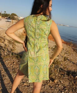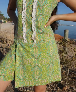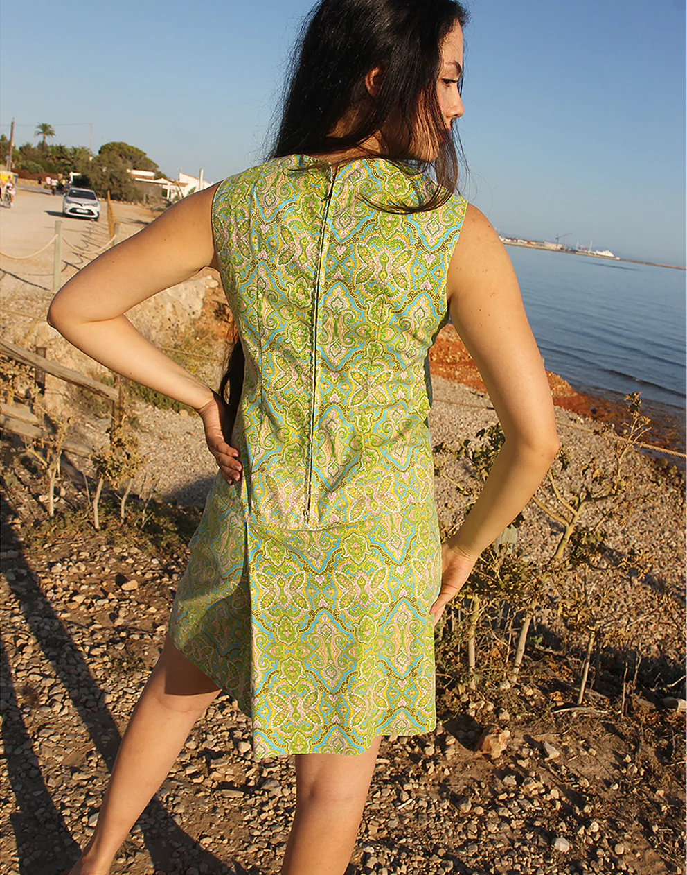 Measurements: 36″/ 91cm bust – 32″ / 81cm waist – 34″ / 86cm hips – 35″ / 89cm playsuit length.