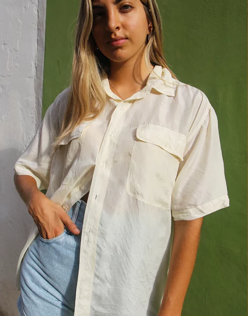 Measurements – 44″(112cm) bust, 9″(23cm) sleeve length, 28″(71cm) shirt length.