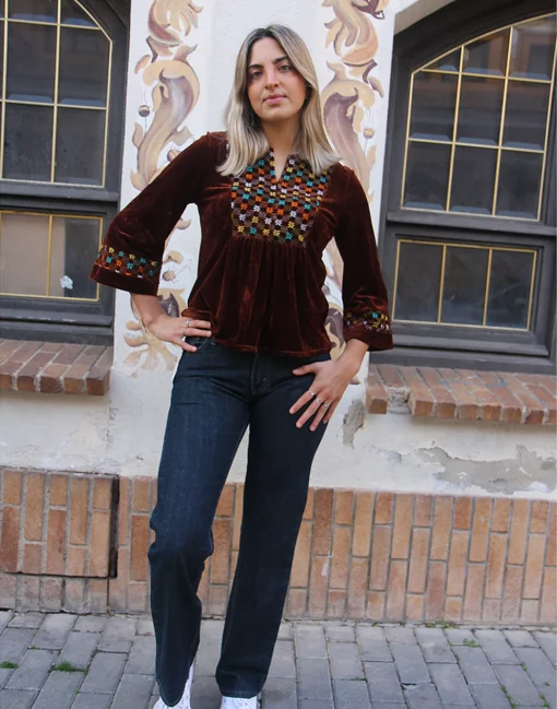 Measurements: 36″/ 91cm bust – 20″ / 51cm sleeve length – 23″ / 58cm top length.