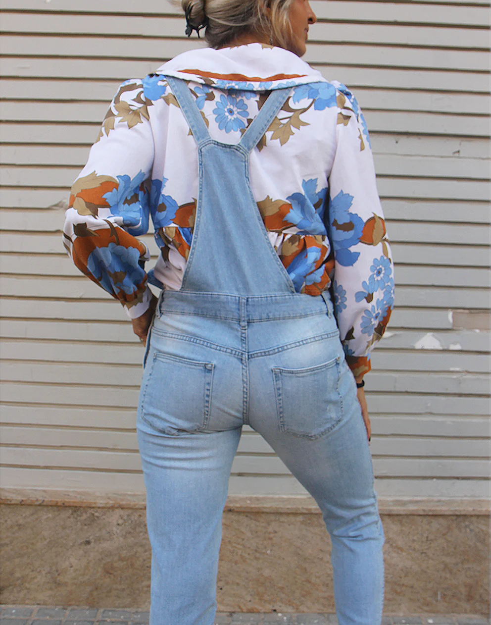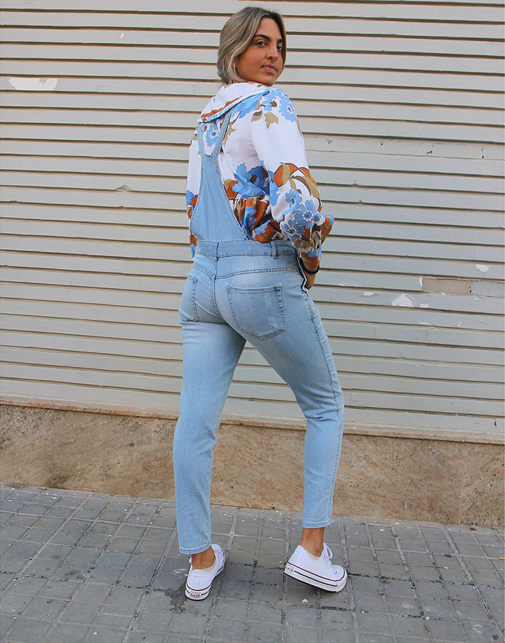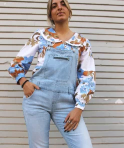 Measurements – 8″(21cm) top of bib – 11.5″(30cm) bottom of bib – 28″(71cm) waist – 32″(81cm) hips – 29″(74cm) inner leg – 10″(26cm) rise.